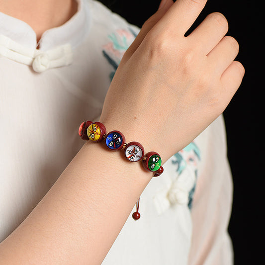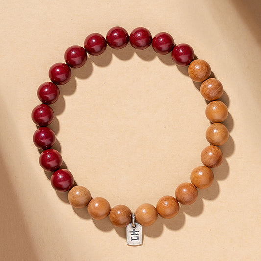 Wooden Mineral Peach Wood and Cinnabar Mixed Bracelet Attracts Love and Protects Peace