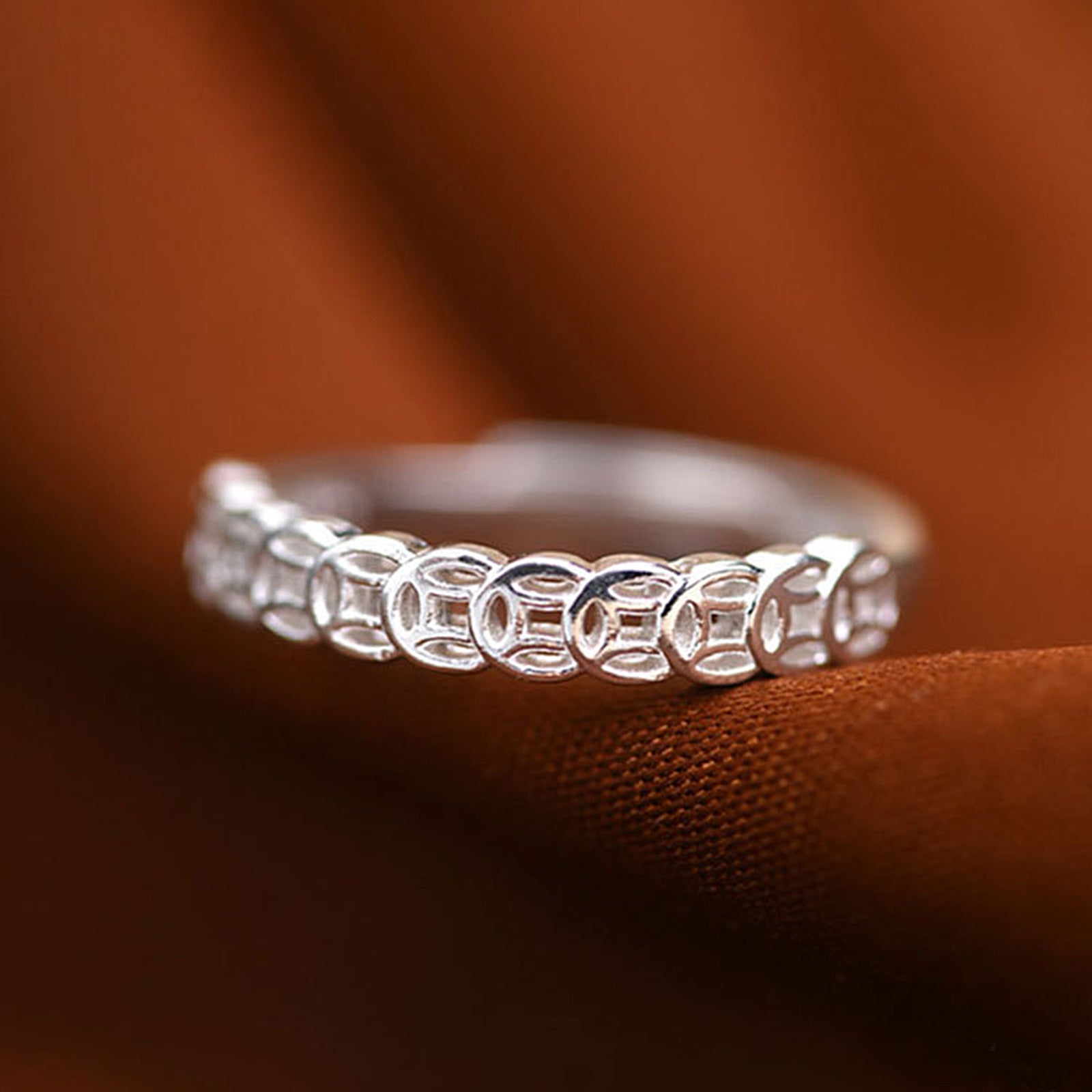 This ring is made of high-quality metal and is made with precise craftsmanship to ensure that the ring is strong and durable while showing a noble and elegant appearance. The surface of the ring is engraved with exquisite copper coins. Each copper coin is a witness to history and carries rich cultural connotations and value.