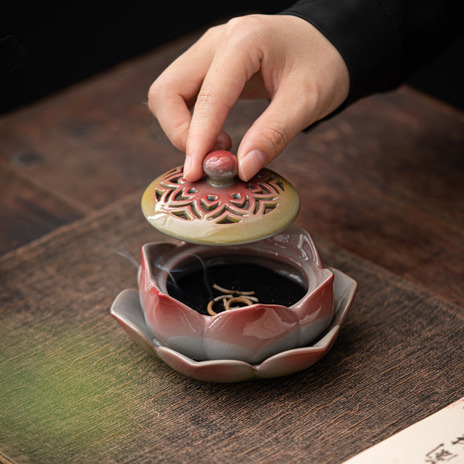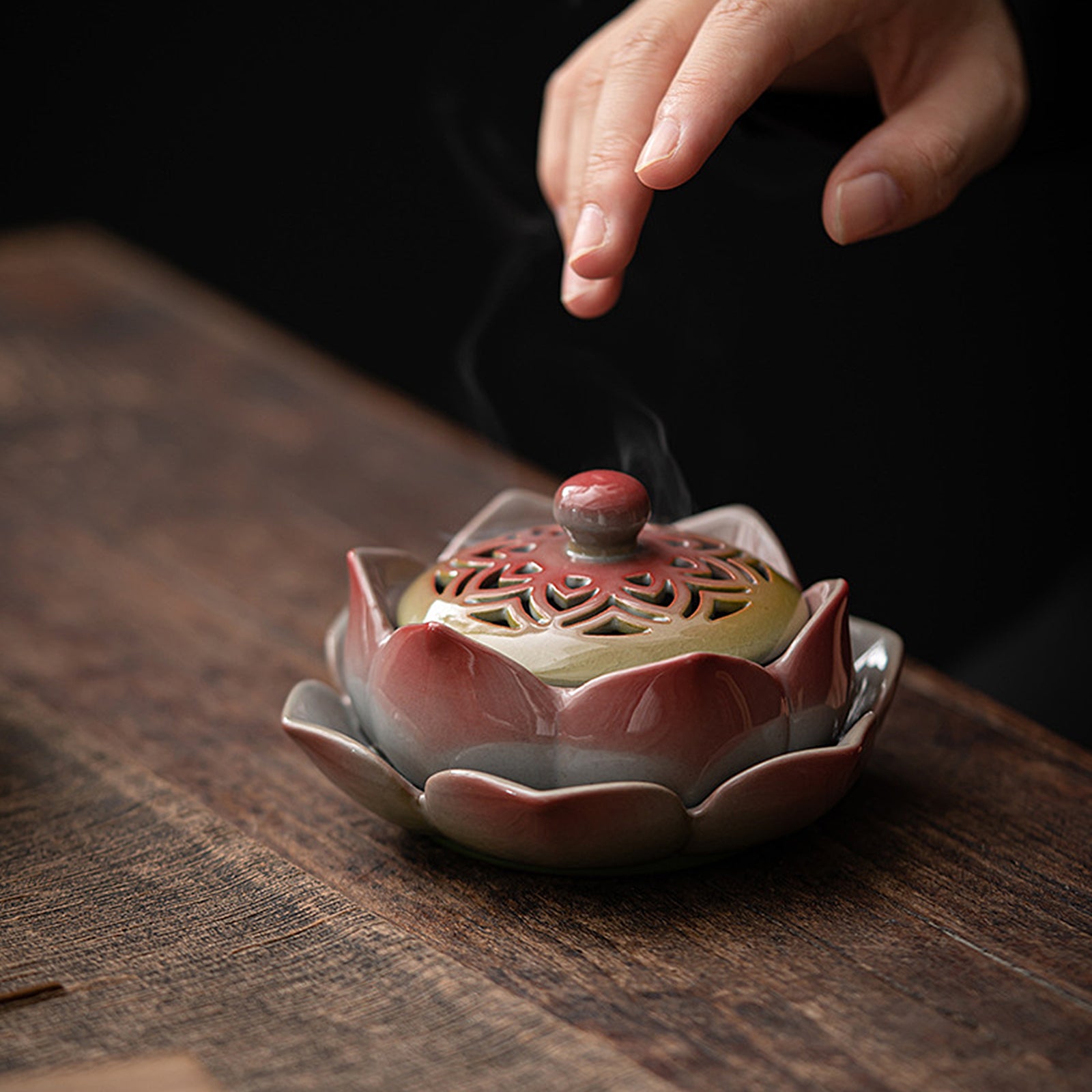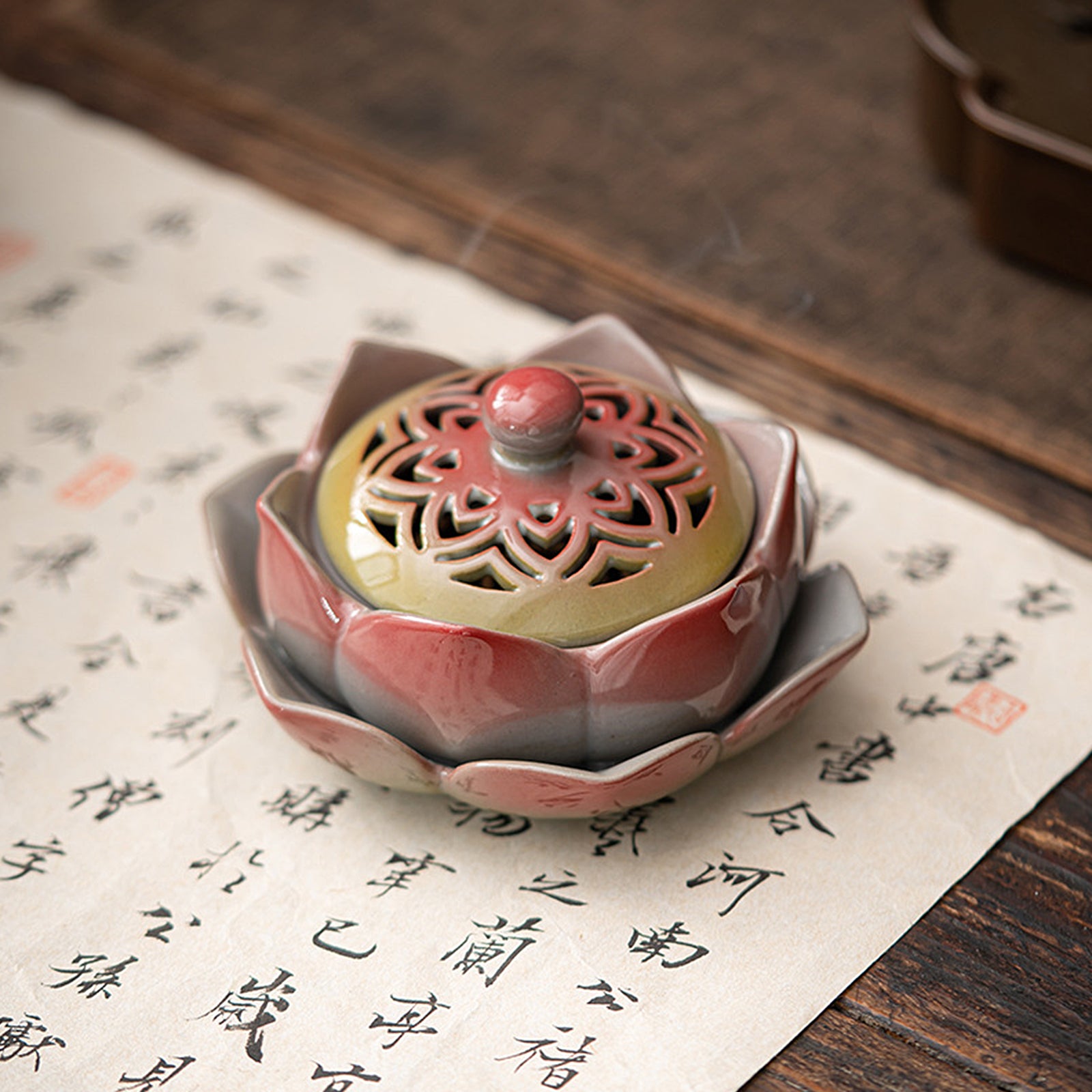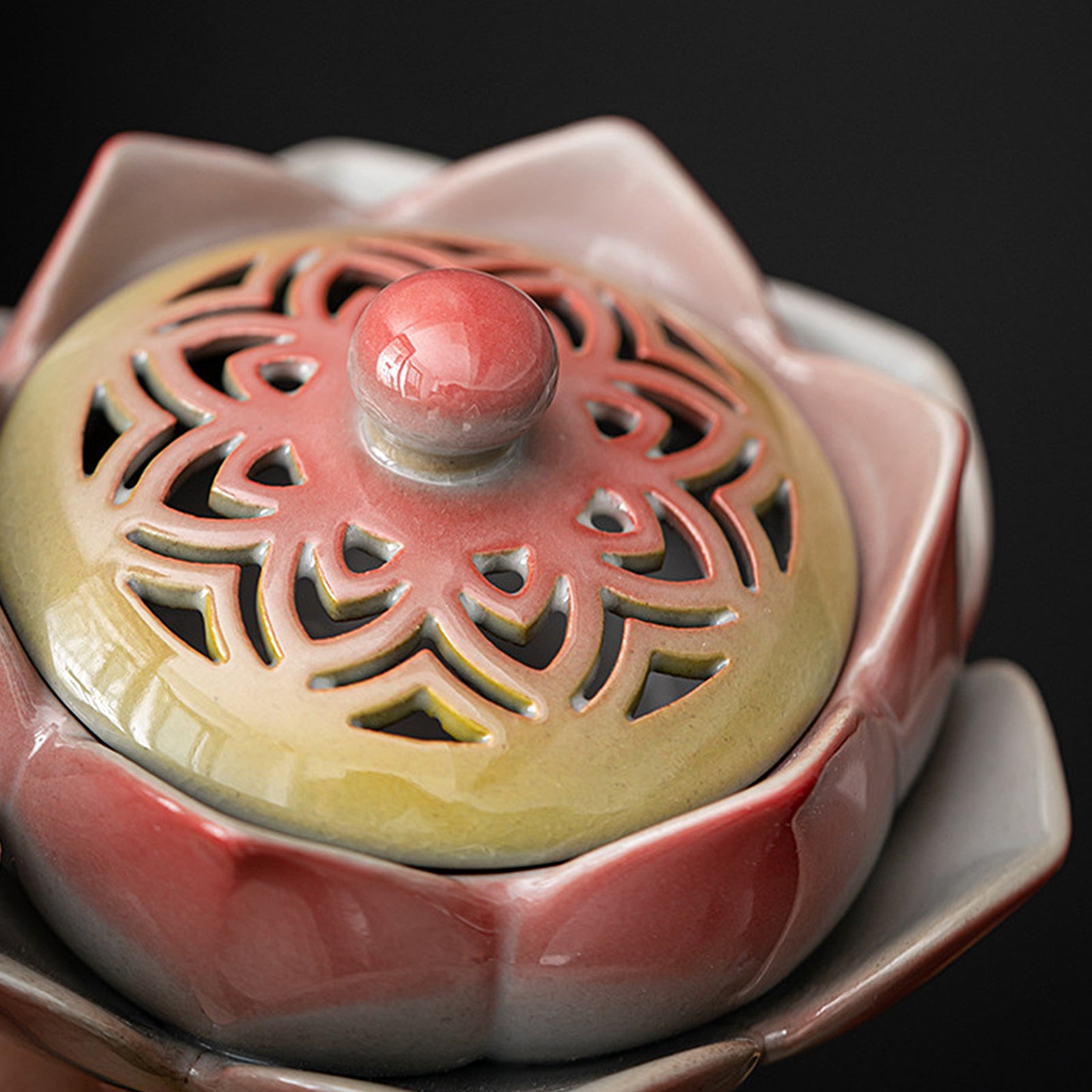 The ceramic lotus incense burner is a delicate and elegant work of art. It not only has practical functions but also contains profound cultural connotations. It is designed with the classical lotus shape as inspiration. The overall lines are smooth and elegant, showing a profound oriental aesthetics. The exquisite ceramic craftsmanship gives it a unique texture, and the delicate hand carving makes each piece unique.