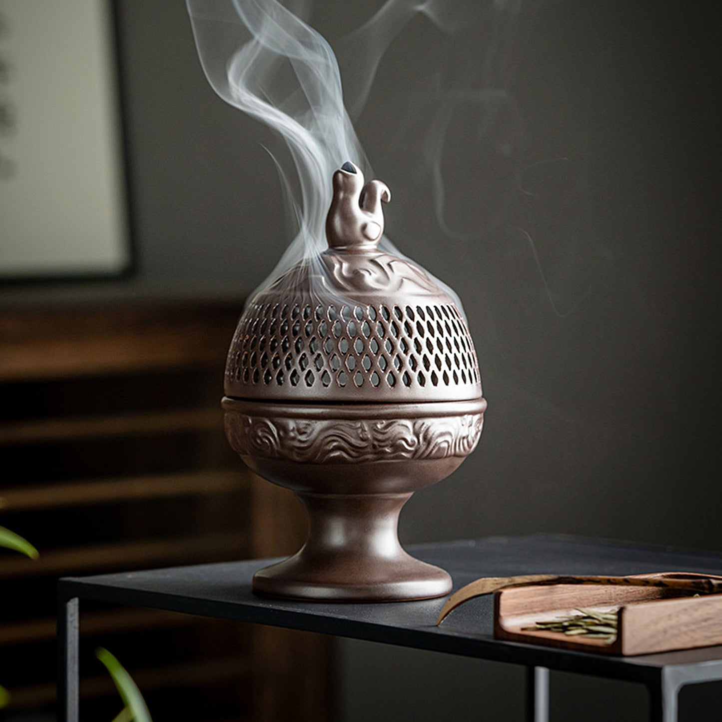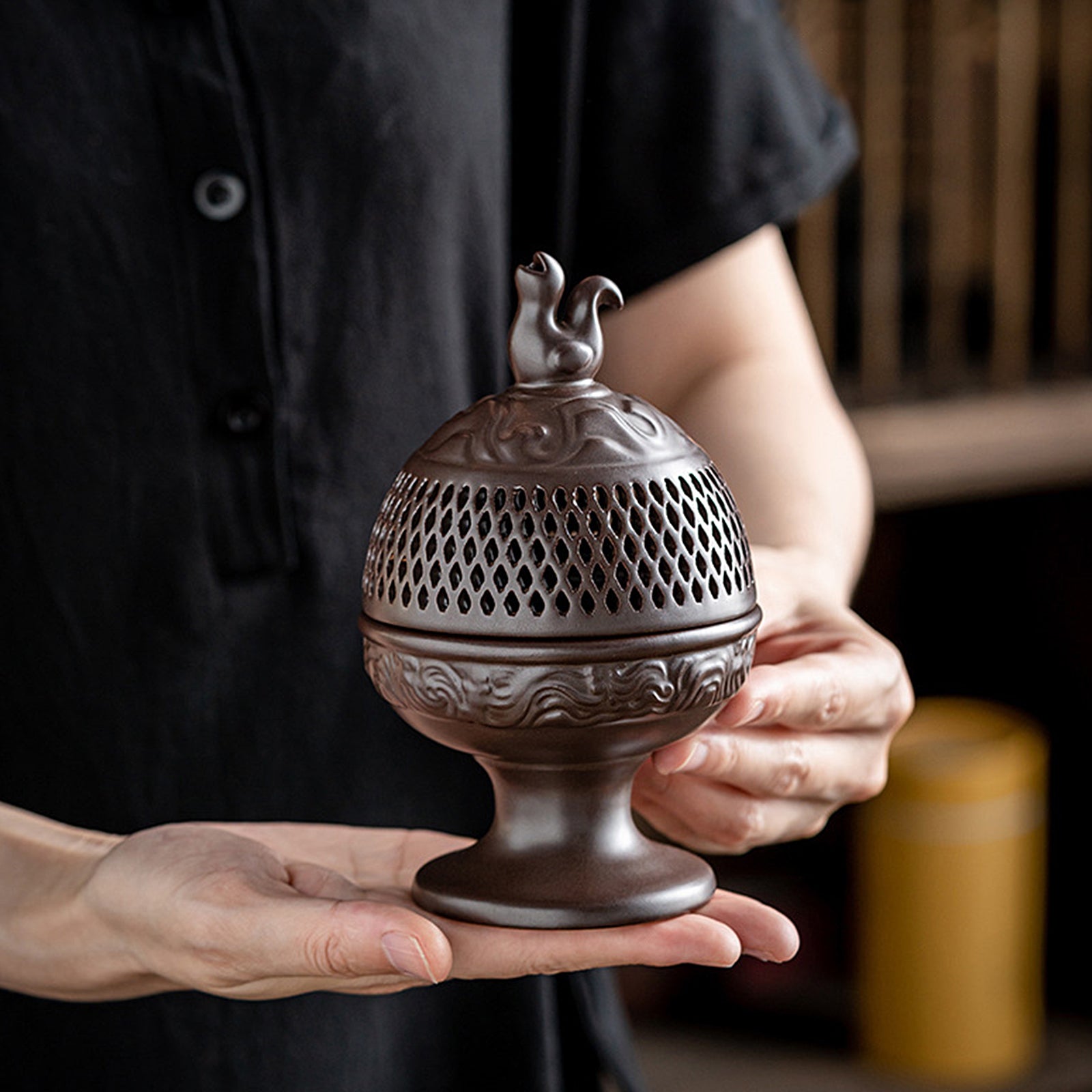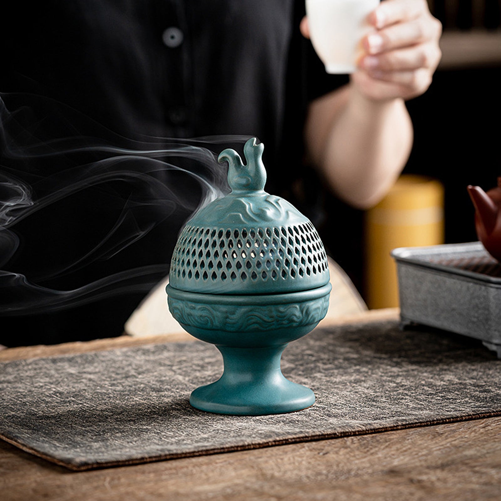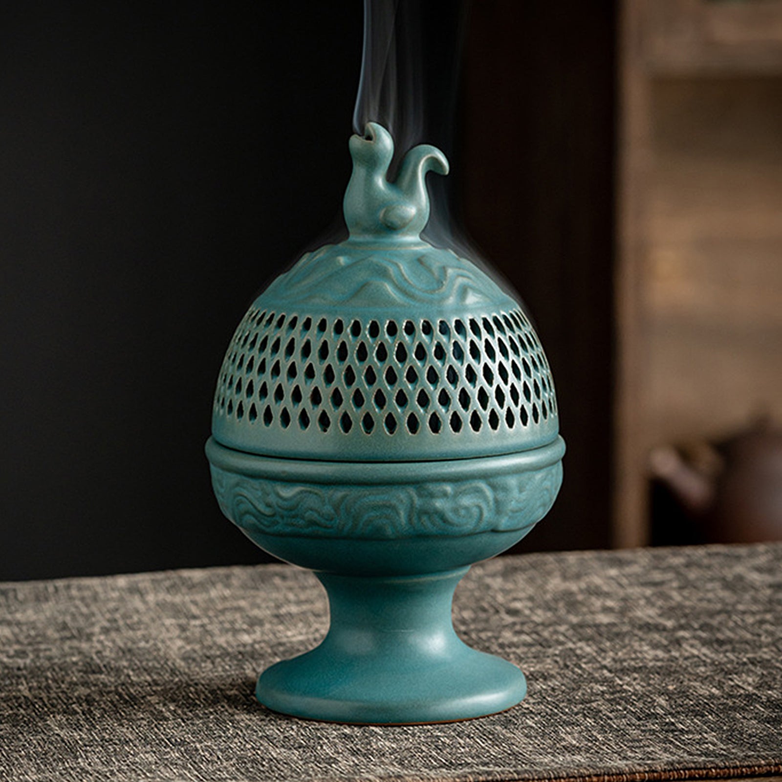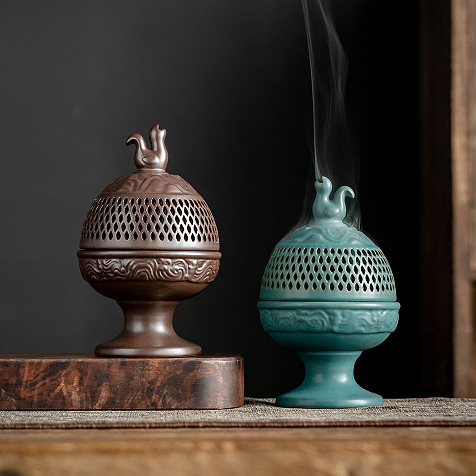 The ceramic antique Chinese incense burner is based on the design prototype of the ancient Chinese incense burner and is made of exquisite ceramic craftsmanship. It has a simple and elegant appearance with smooth lines, showing the unique charm of traditional oriental aesthetics. Antique Chinese incense burners are not only decorative but also carry rich cultural connotations. Its design is inspired by the ancient Chinese incense culture. Light the incense and put it in the incense burner. The light fragrance will emit, creating a peaceful and peaceful atmosphere, calming people's moods, and soothing their emotions. The incense burner is also endowed with the symbolic meaning of praying for blessings and peace, symbolizing auspiciousness and peace, and bringing auspiciousness to the family. The ceramic material makes the incense burner have excellent heat preservation performance, which can maintain the aroma for a long time, release it slowly, and create a long-lasting pleasant atmosphere. The ceramic antique Chinese incense burner is not only a decorative item with practical functions, but also a representative and inheritance of traditional Chinese culture, adding a sense of history and interest to modern life.