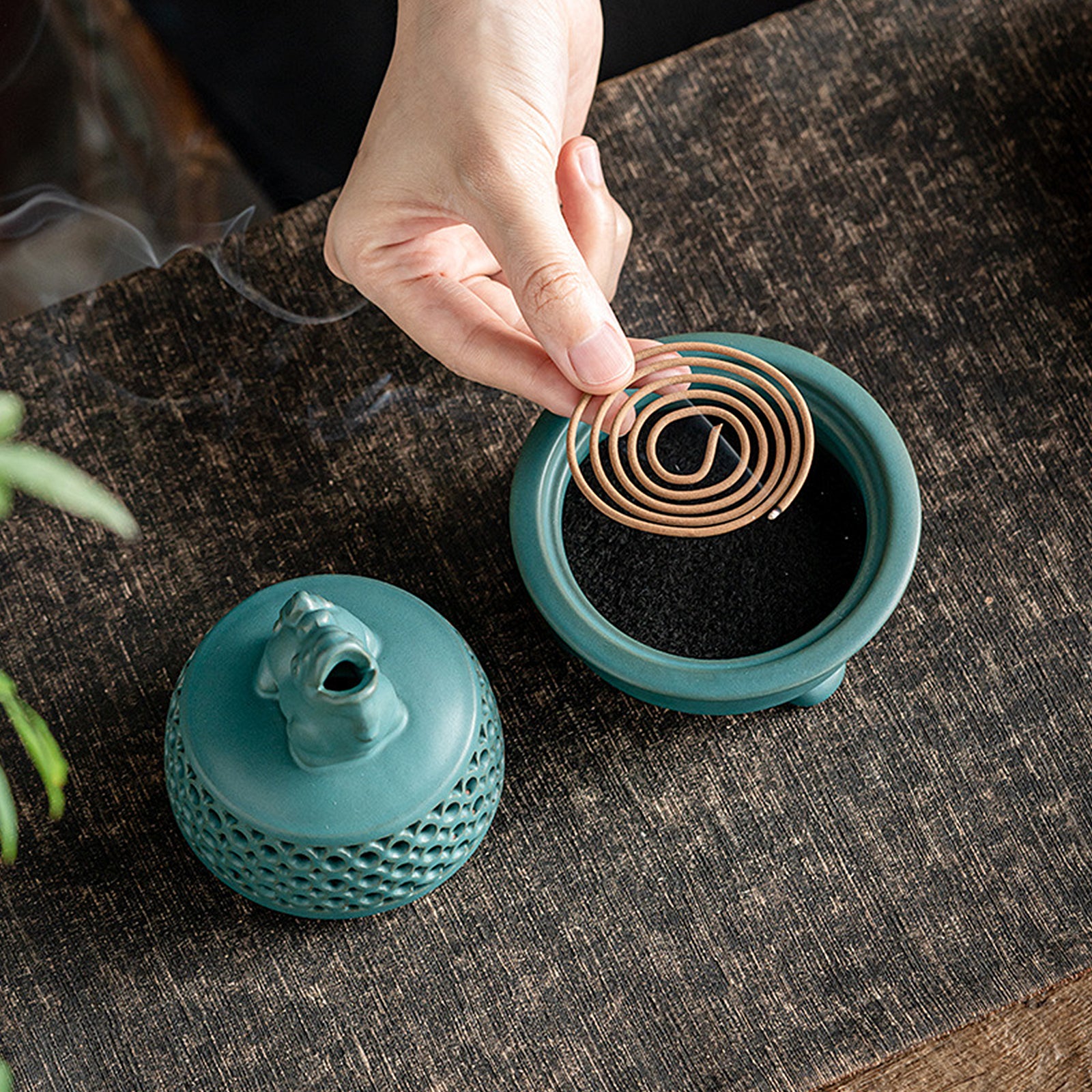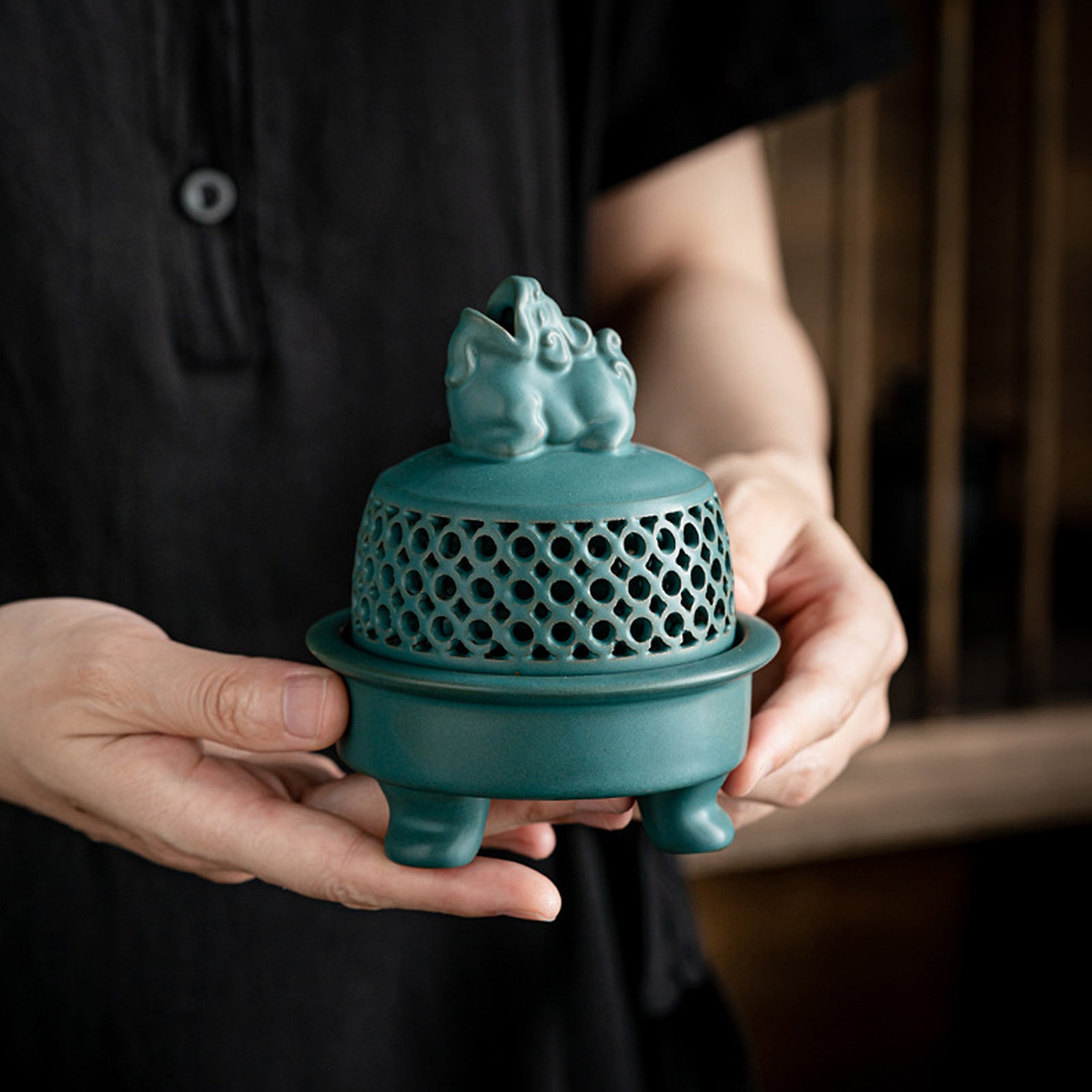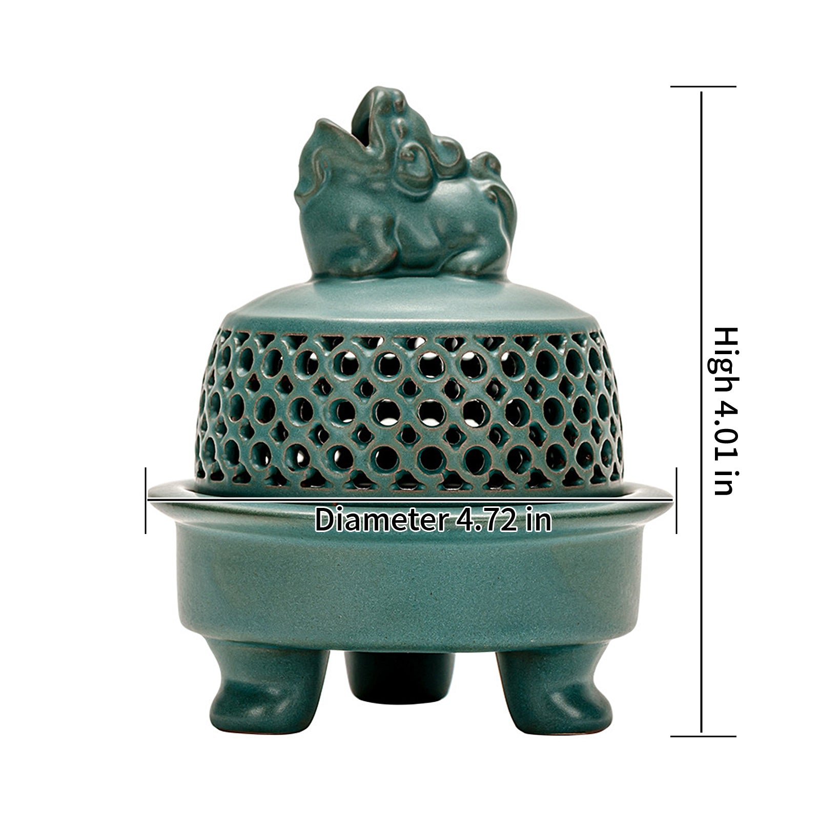 The ceramic antique Pixiu Chinese-style incense burner has a reasonable design. Lighting the incense coil and placing it in the incense burner can release the fragrance and create a quiet and peaceful atmosphere. The incense burner is placed at home as a decoration, which not only adds an antique atmosphere but also shows the owner's love and taste for traditional culture.