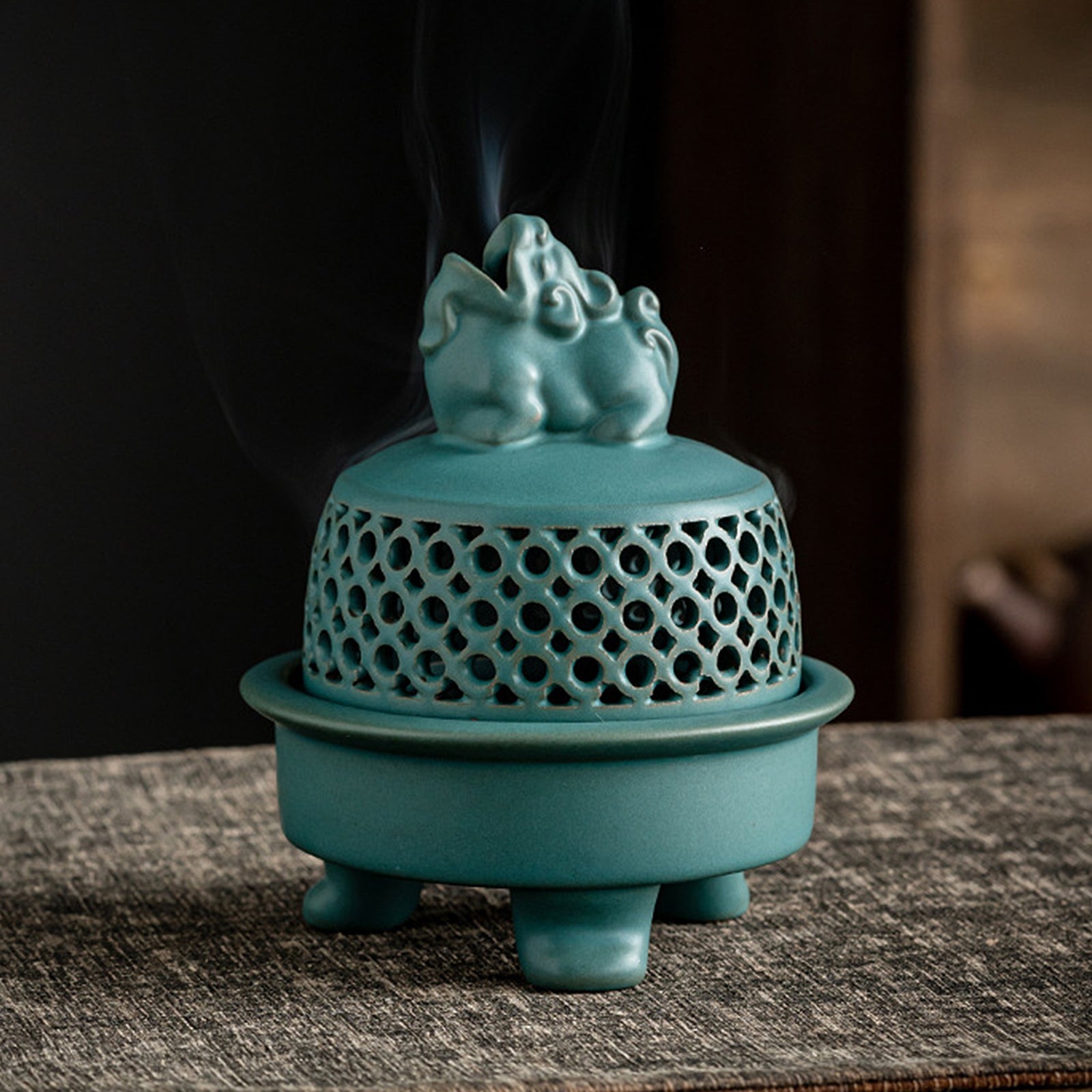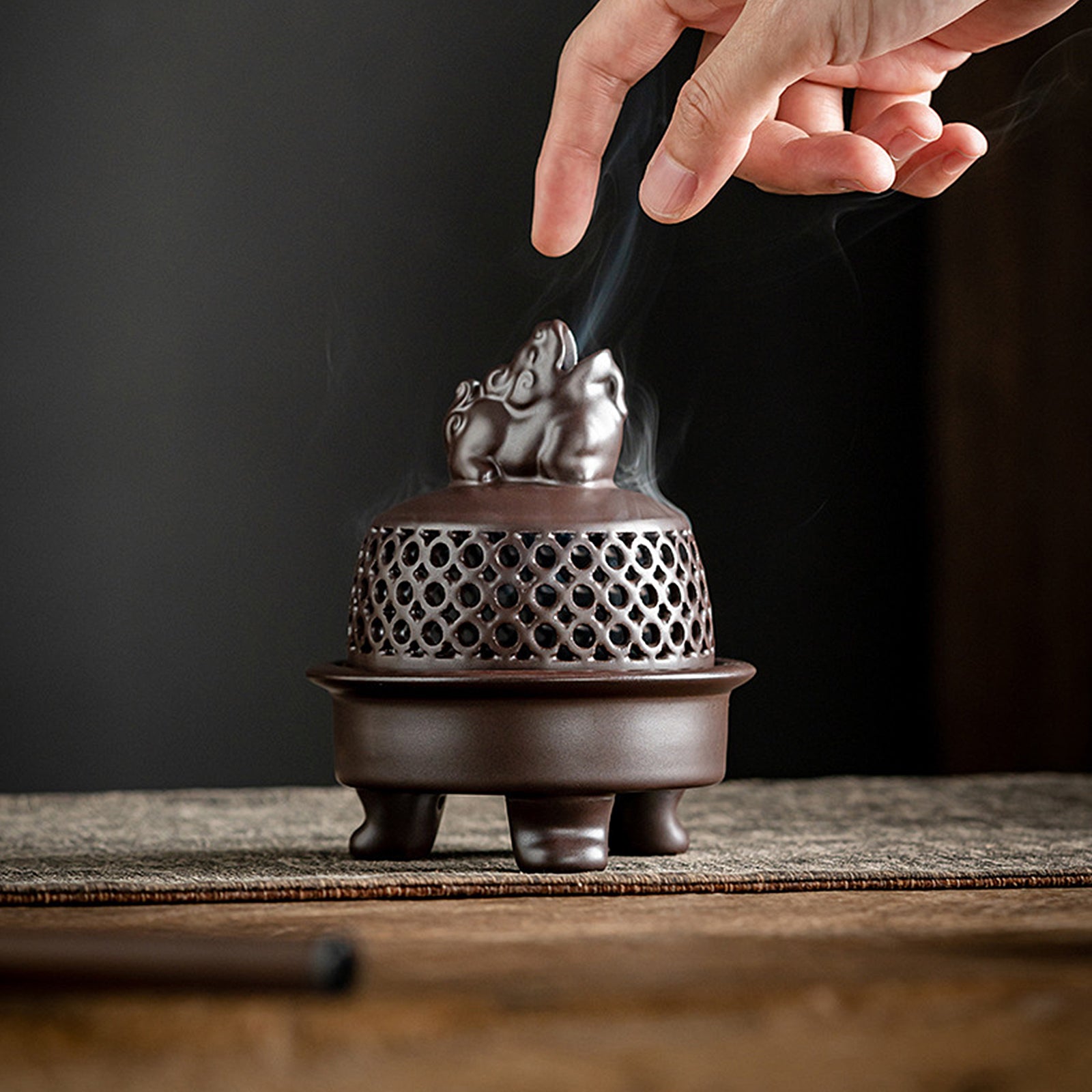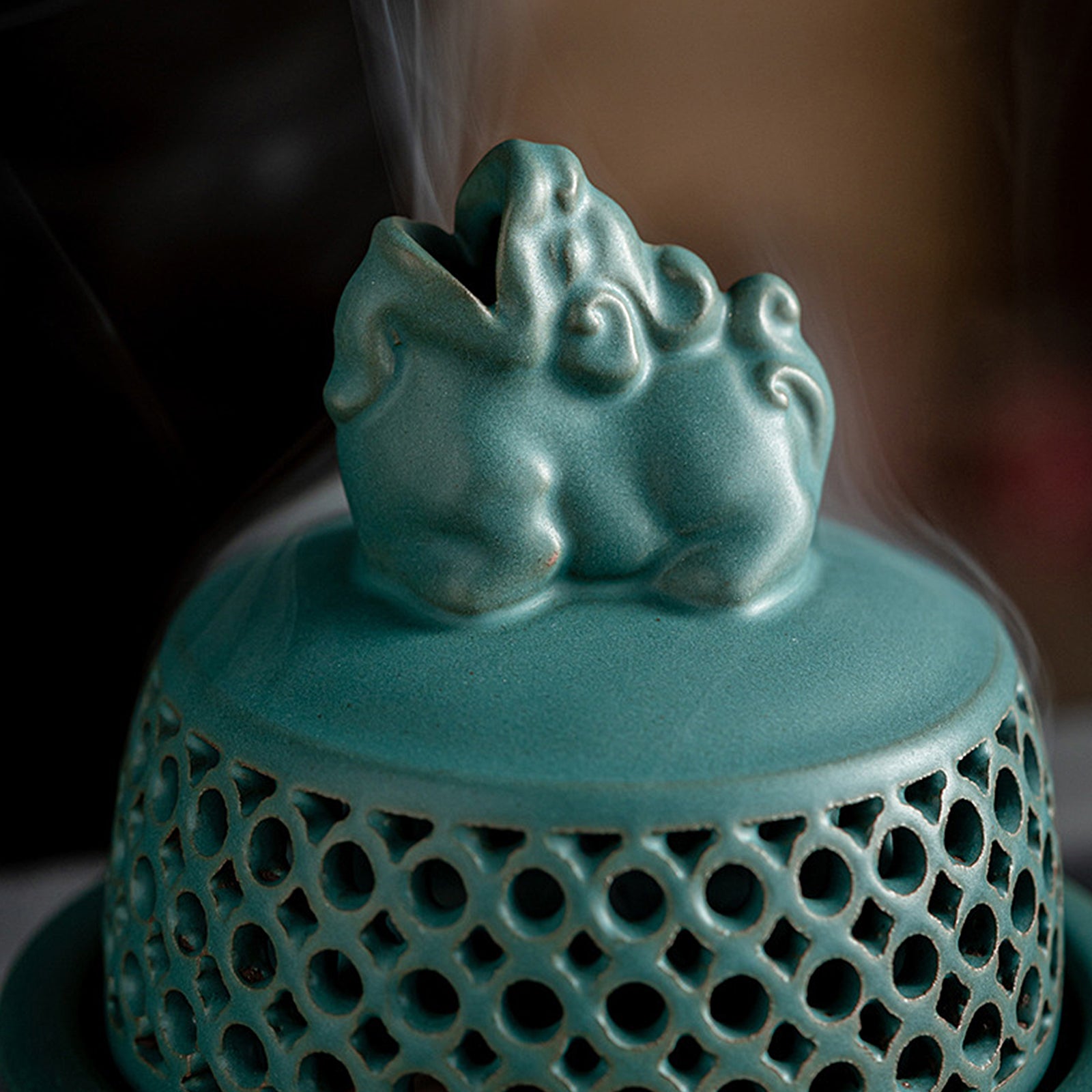 Place the ceramic antique Pixiu incense burner in the financial position of your home or office and light the incense to attract wealth and good luck. Place it at the door of your home, living room, or entrance, and light incense every day. It can form a protective barrier to resist evil spirits and keep your home safe. According to the recommendations of Feng Shui masters, placing the incense burner in a specific location, such as the Wealth Position or Wenchang Position, and lighting incense every day will help regulate Feng Shui, enhance fortune, and promote career and academic development. During meditation, meditation, or prayer, place the incense burner in front of or next to you and light the incense to help enhance spirituality and promote peace of mind. Place the incense burner in a frequently used area of your home, light the incense, and let the aroma permeate the entire space, which can help regulate mood, relieve stress, improve sleep, and improve overall health. Combining the wealth-promoting and evil-repelling effect of Pixiu and the purifying function of the incense burner, this incense burner can improve the quality of life and increase blessings and good luck.
