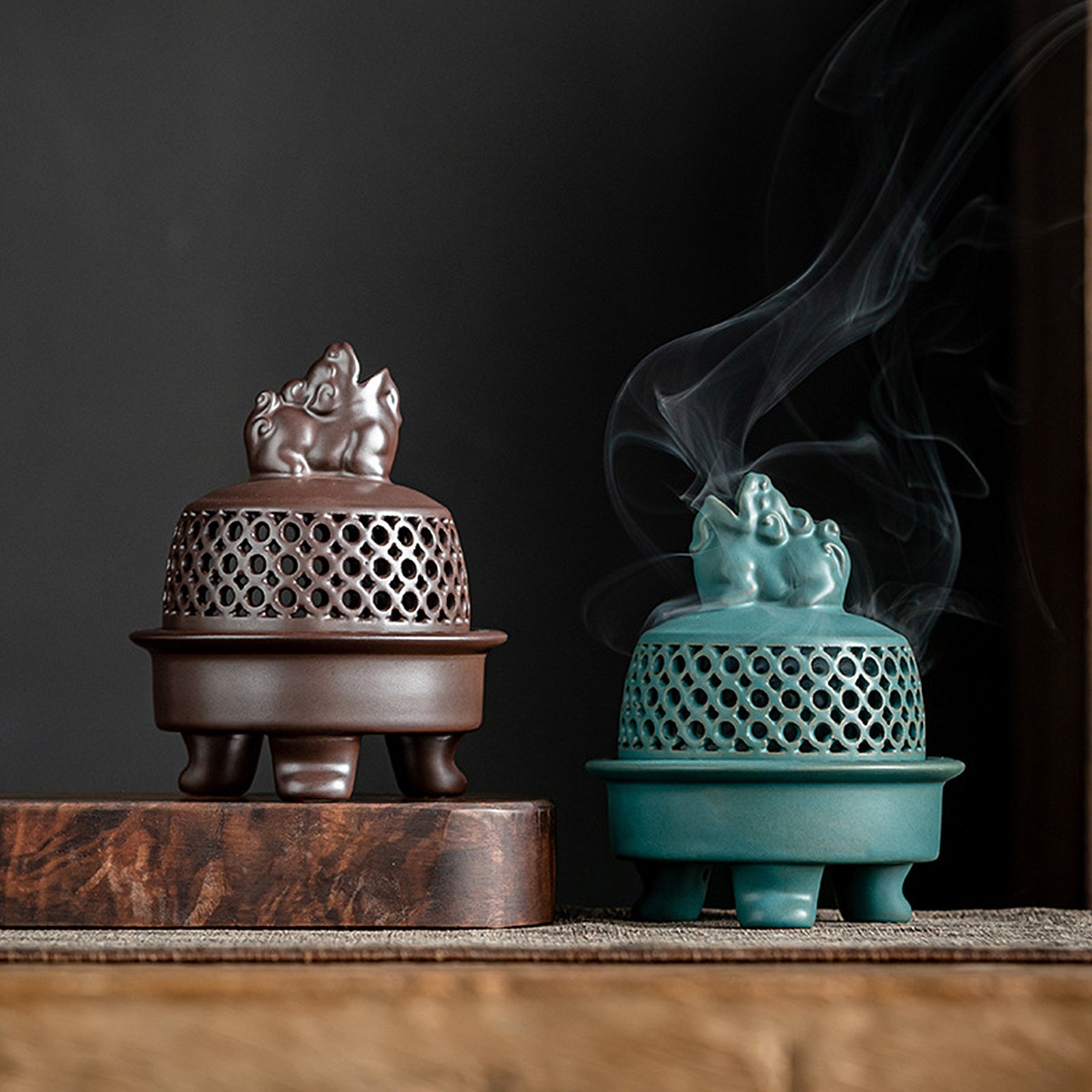 The ceramic antique Pixiu Chinese-style incense burner is not only an ornament with artistic value, but also an exquisite handicraft that combines practicality, cultural connotation, and blessing significance. It perfectly integrates traditional culture with modern life, becoming a unique choice for modern home decoration.