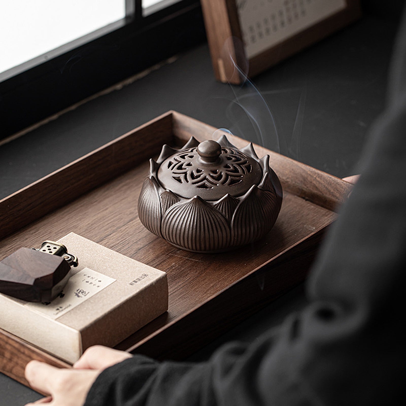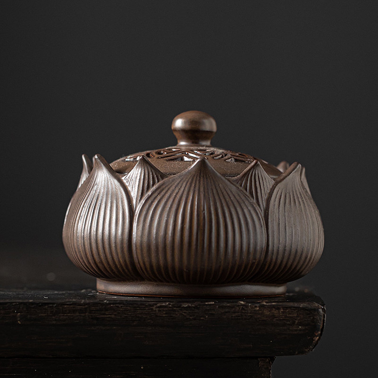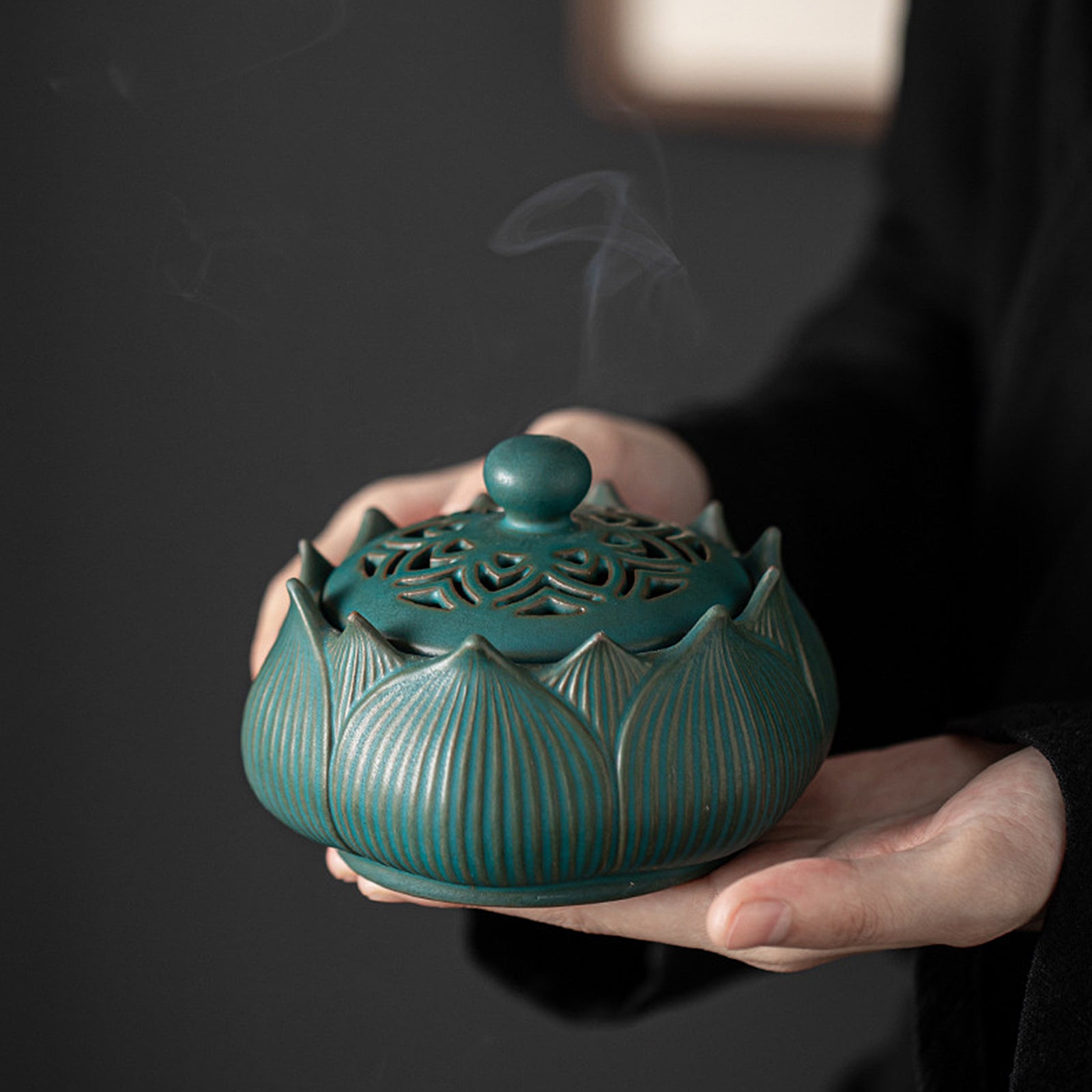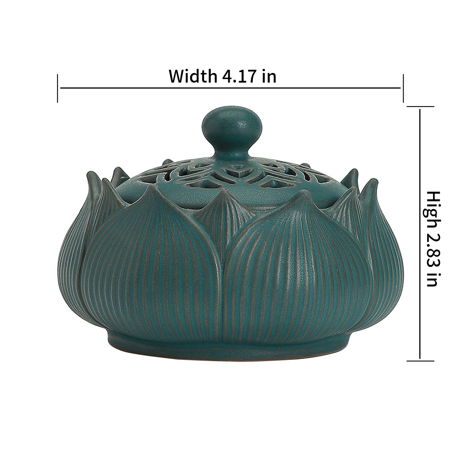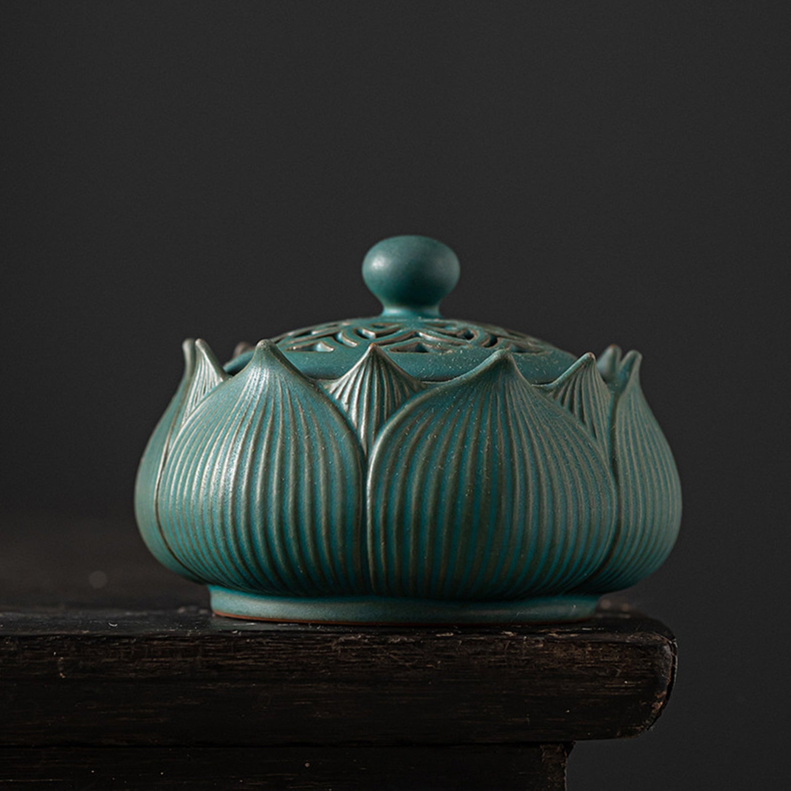 The ceramic lotus incense burner is a delicate and elegant work of art. It not only has practical functions but also contains profound cultural connotations. It is designed with the classical lotus shape as inspiration. The overall lines are smooth and elegant, showing a profound oriental aesthetics. The exquisite ceramic craftsmanship gives it a unique texture, and the delicate hand carving makes each piece unique.