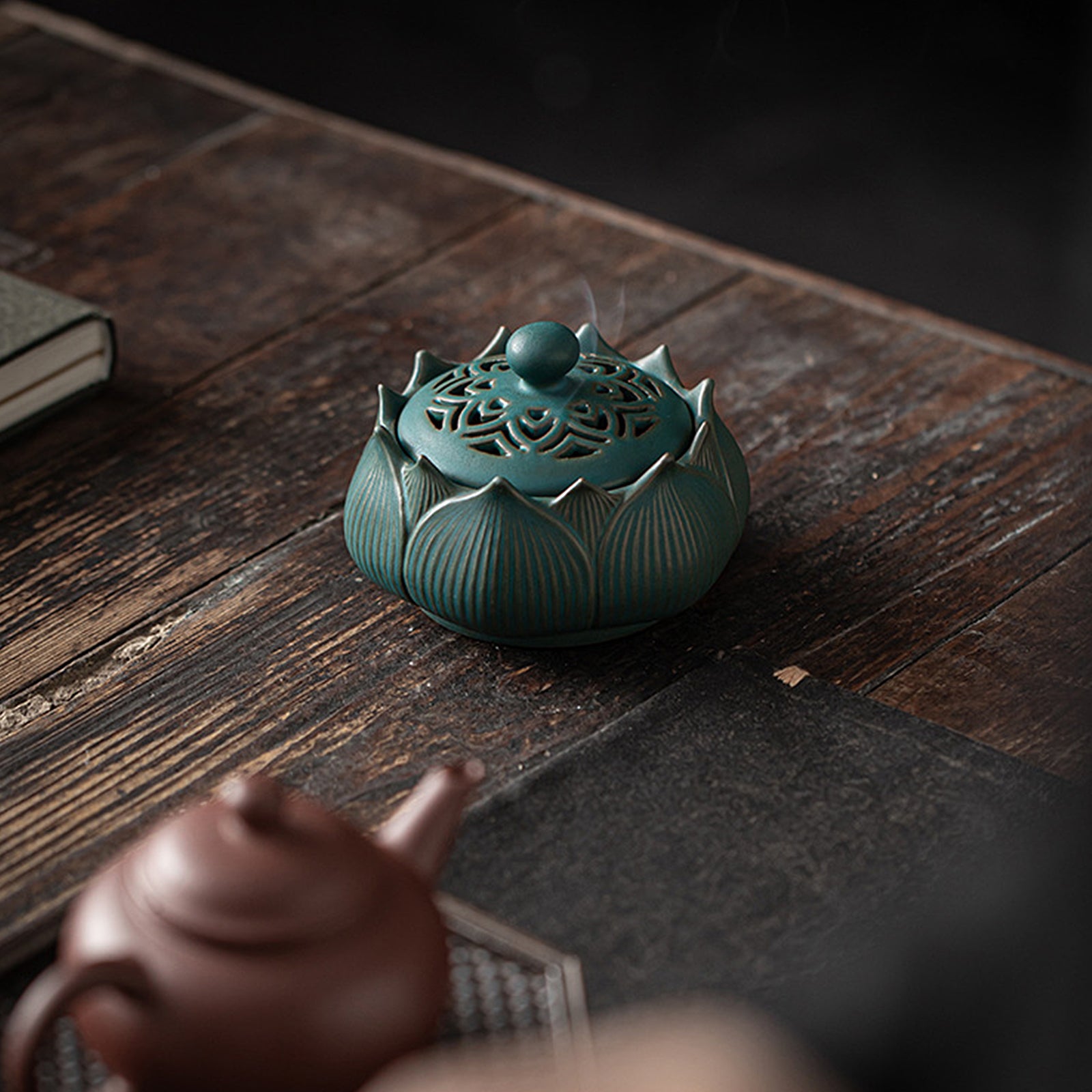 The ceramic lotus incense burner also carries cultural inheritance and connotation. The lotus has the symbolic meaning of peace, purity, and holiness in Eastern culture. Therefore, the lotus incense burner is often regarded as a symbol of auspiciousness, adding auspiciousness and peace to the home. Whether as a personal collection or as a gift, the ceramic lotus incense burner is a rare fine product. It combines art, practicality, and cultural connotations, and has become a spiritual sustenance in modern life.