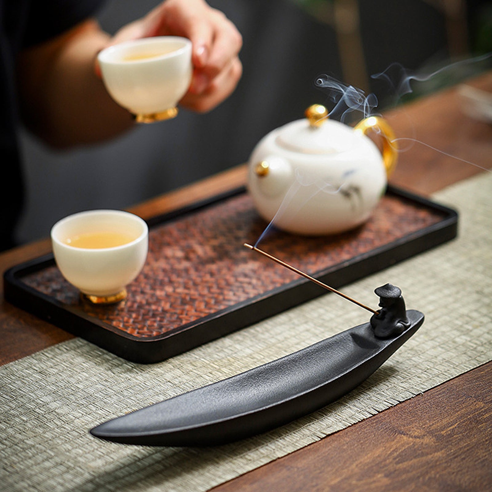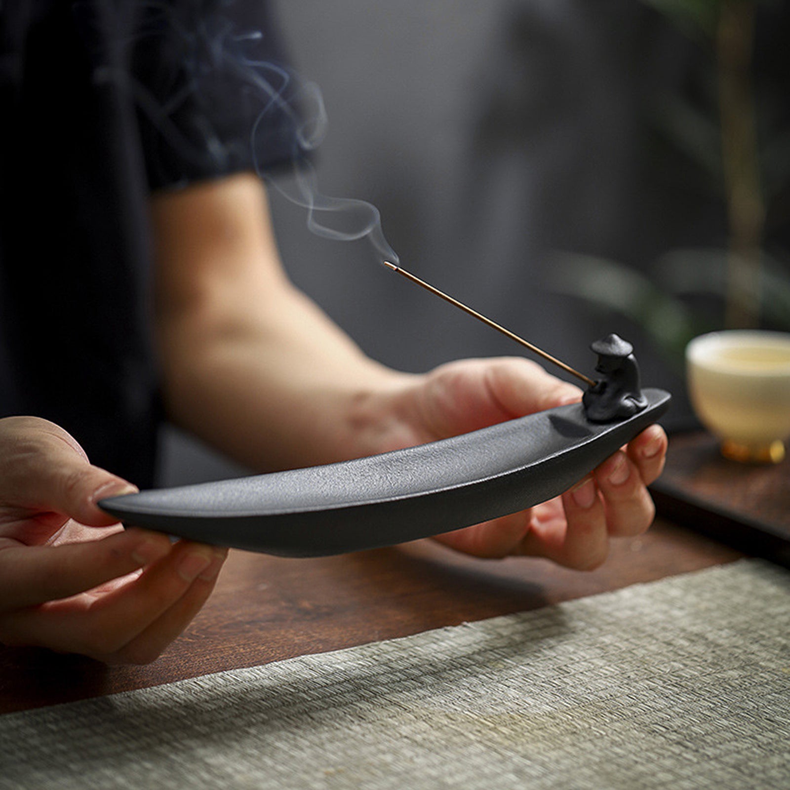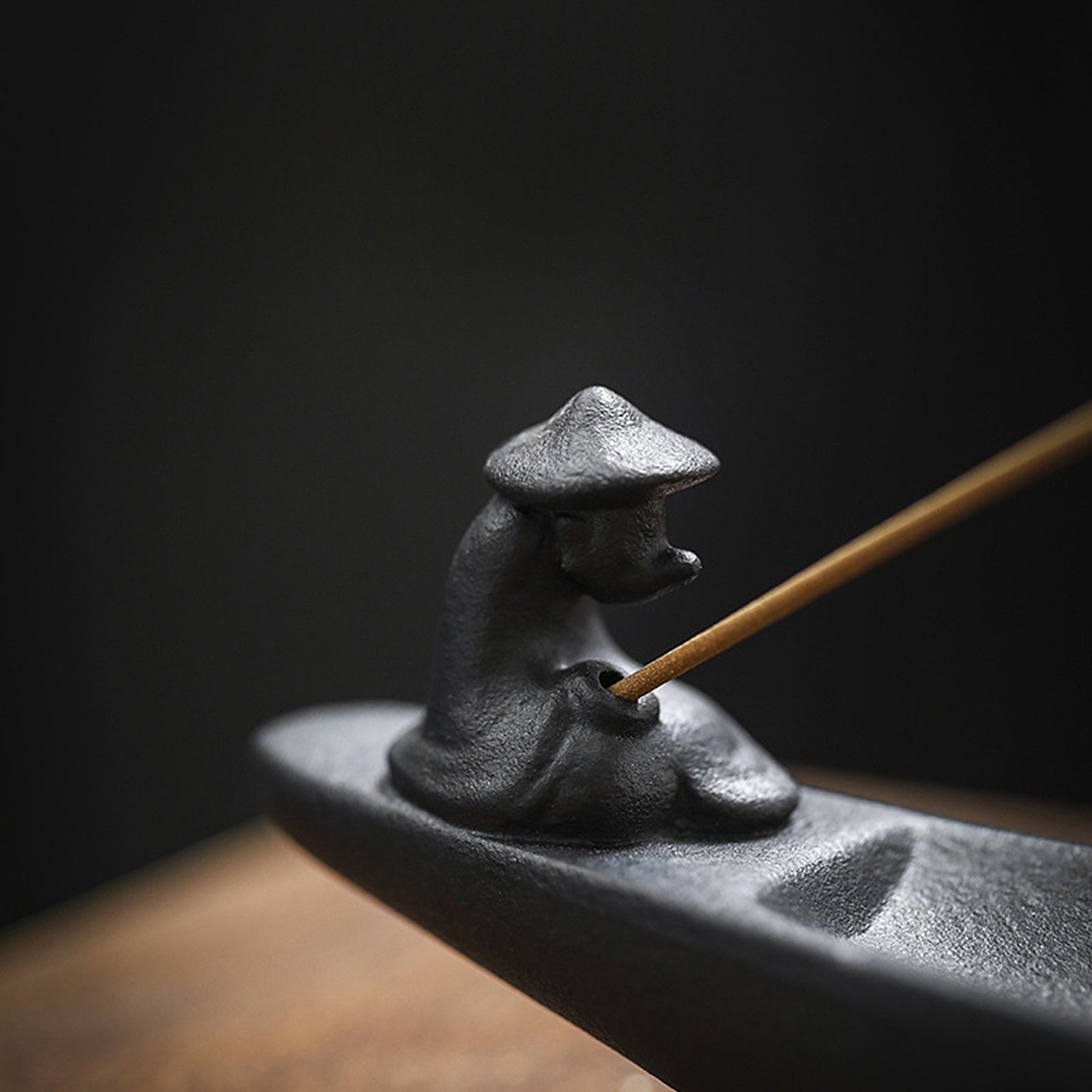 The incense burner has a unique design. The incense sticks are inserted into the mast of the fishing boat. After being lit, the smoke rises slowly against the background of the fisherman fishing. It is suitable for meditation and quietness. The method of use is simple. Just insert the incense stick into the mast and light it. Whether it is used as an incense utensil or a decorative item, this incense burner can bring you a unique enjoyment and visual feast.