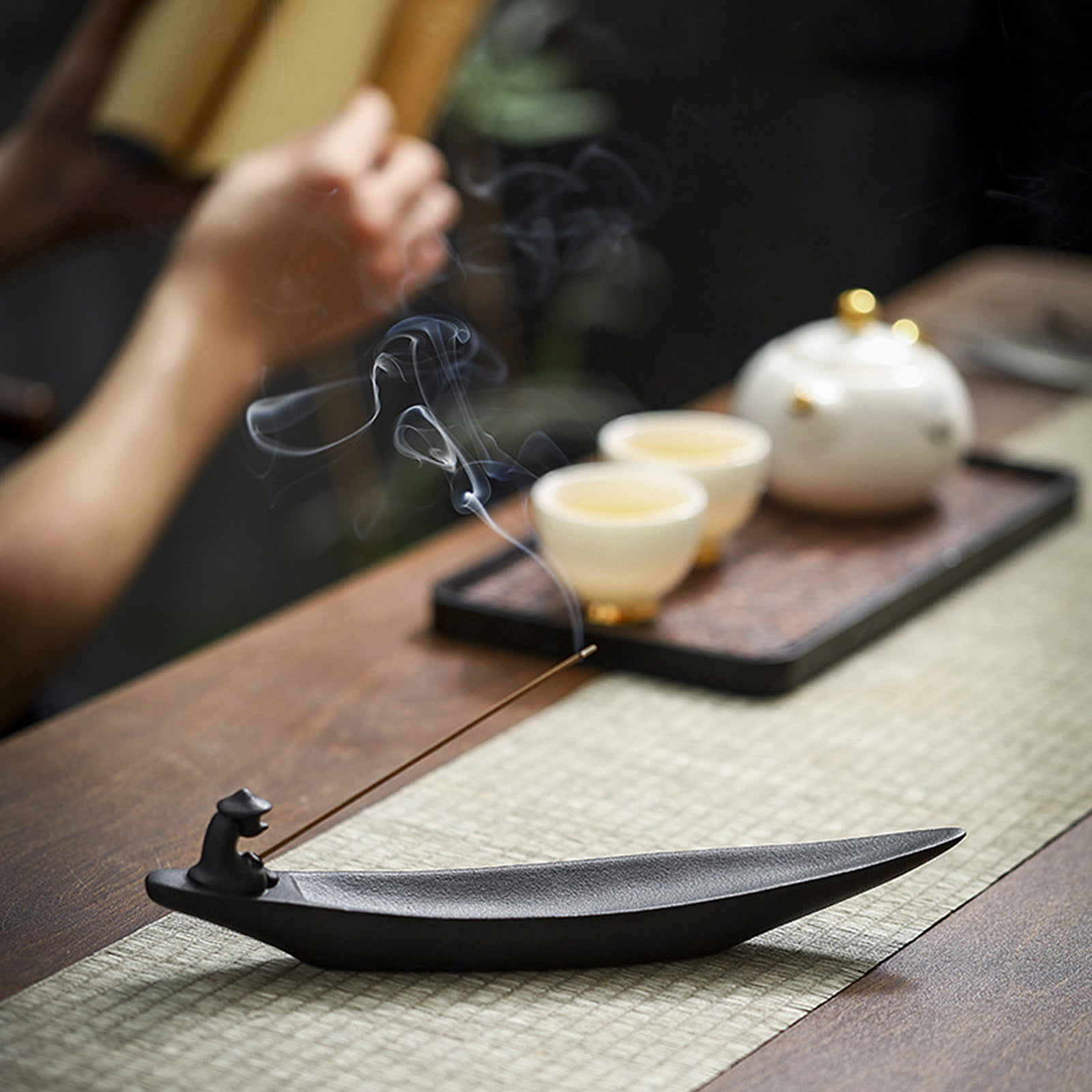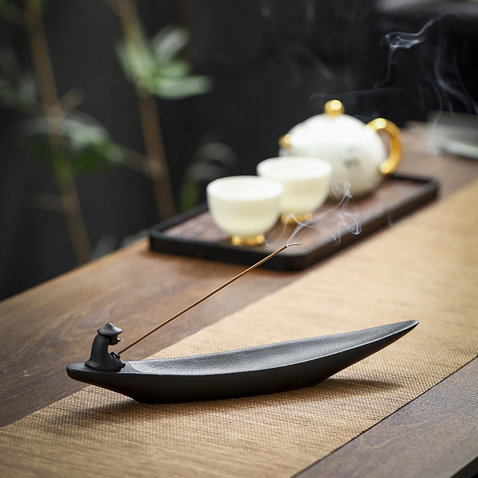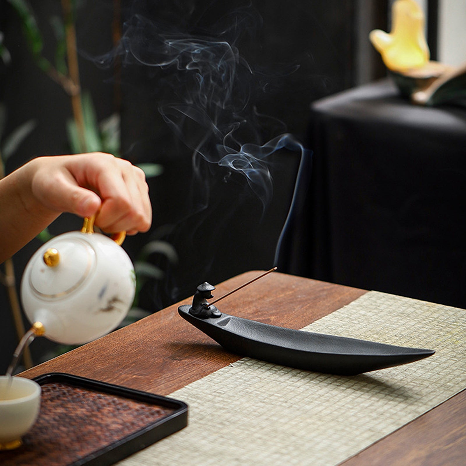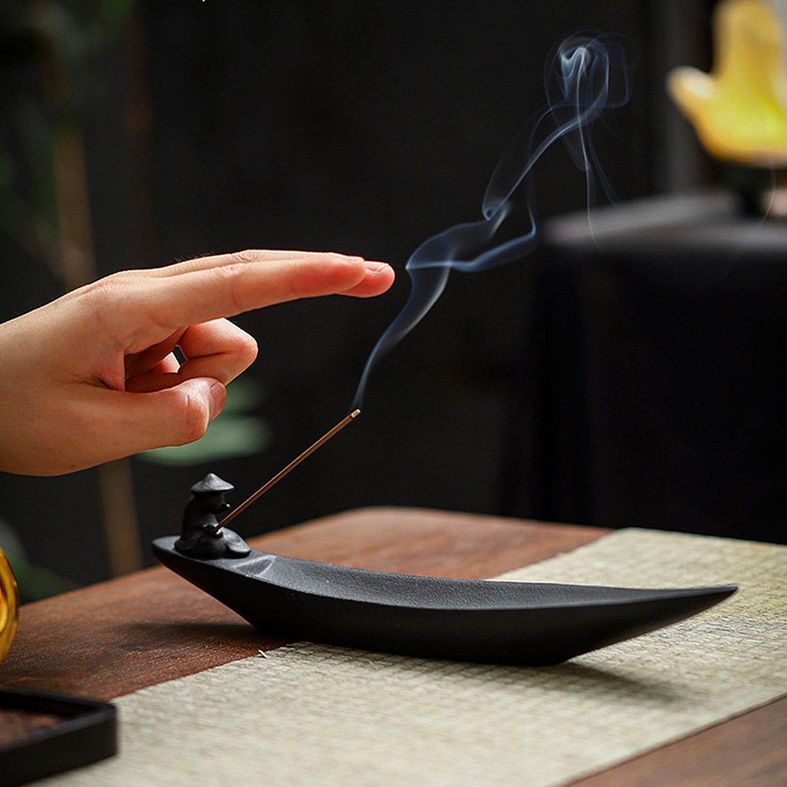 The incense burner has a unique design. The incense sticks are inserted into the mast of the fishing boat. After being lit, the smoke rises slowly against the background of the fisherman fishing. It is suitable for meditation and quietness. The method of use is simple. Just insert the incense stick into the mast and light it. Whether it is used as an incense utensil or a decorative item, this incense burner can bring you a unique enjoyment and visual feast.