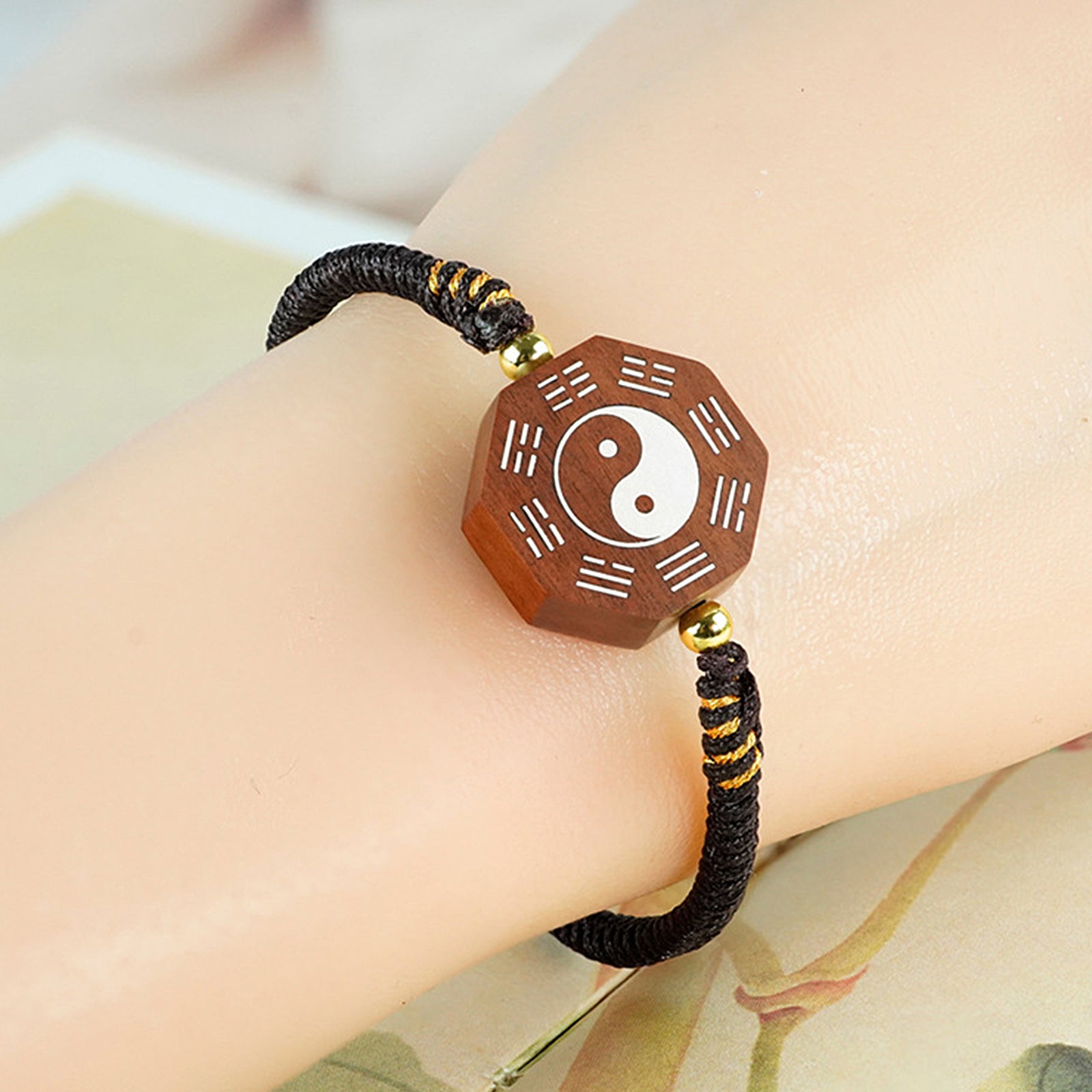 Wear the Zaomu Yin Yang Bagua Bracelet on your left wrist. The left side is Yang and the right side is Yin. The left hand is dominated by Yang Qi. Wearing it on the left hand can receive more positive energy. It helps to cultivate one's moral character, calm one's mind and maintain inner peace and tranquility. The Yin Yang Bagua pattern in the center of the bracelet is regarded as a symbol to ward off evil spirits, which can avoid the intrusion of negative energy and protect the body and soul from evil interference. The Yin and Yang Bagua symbolizes the balance and harmony of the universe. Wearing a bracelet helps to reconcile the Yin and Yang energies of the body and mind, promoting overall balance and harmony. The positive energy emitted by the Yin-Yang Bagua pattern and jujube wood material in the bracelet helps to enhance the aura, enhance personal charm and confidence, and attract the accumulation of positive energy. The Zaomu Yin Yang Bagua Bracelet is a metaphysical protective object that focuses on spiritual protection and energy coordination, bringing all-round balance and protection to the wearer.