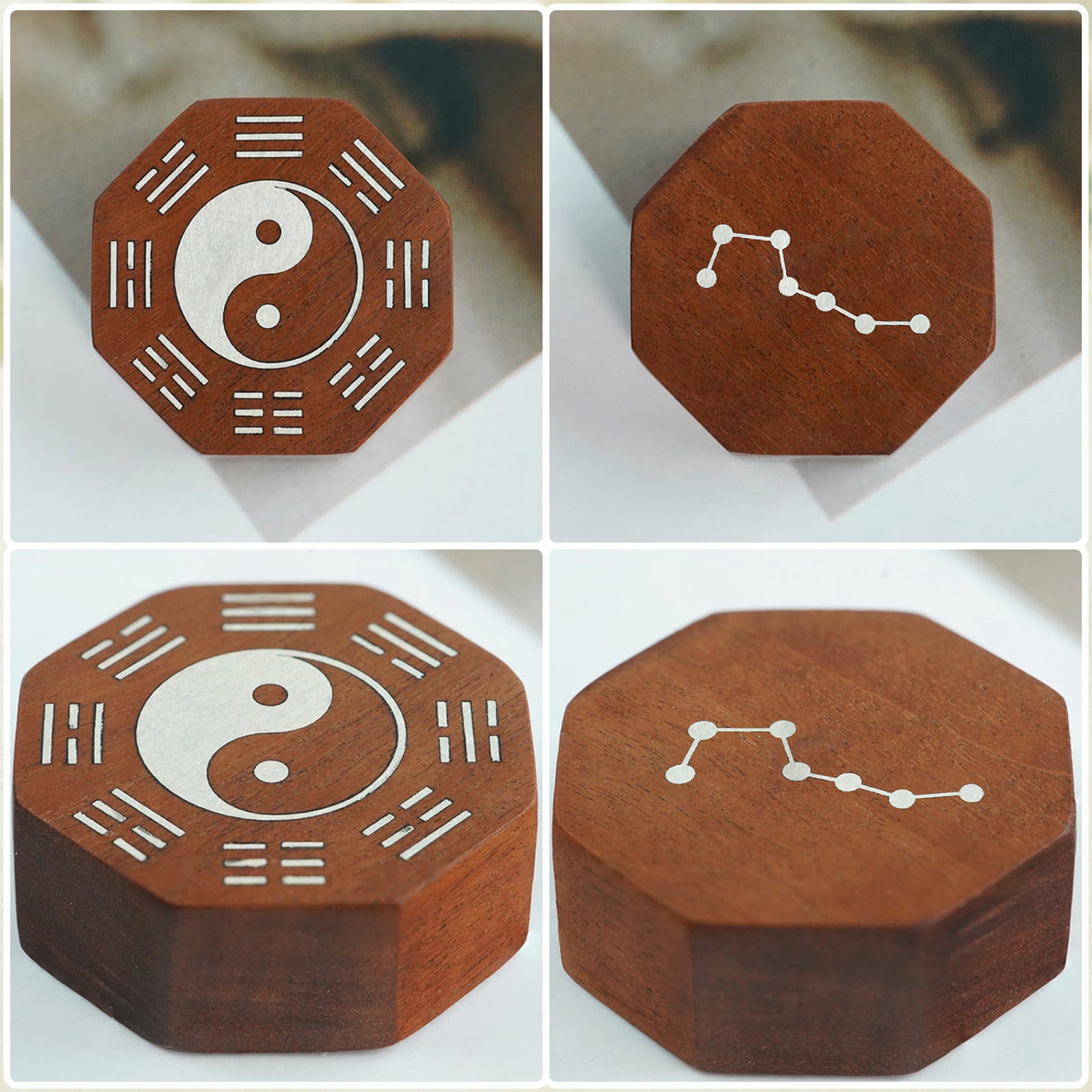 On the back of the Yin Yang Bagua card, the silver Big Dipper array is cleverly inlaid, which is one of the most respected symbols in ancient navigation and Feng Shui. The bright silver light of the Big Dipper symbolizes guidance and wisdom, bringing protection and guidance to the wearer and resolving obstacles on the way forward.