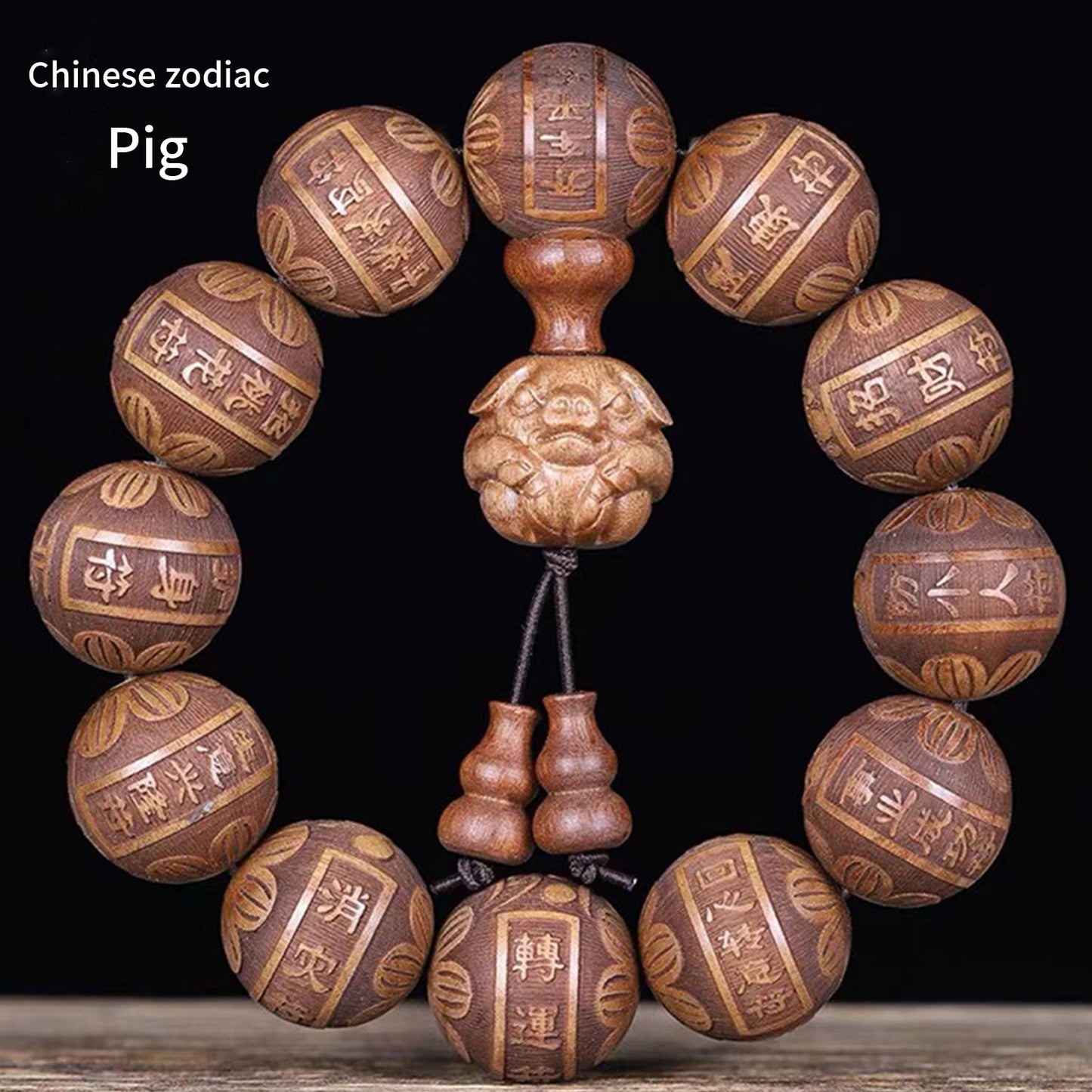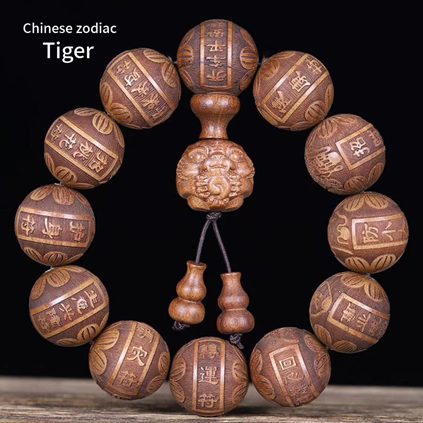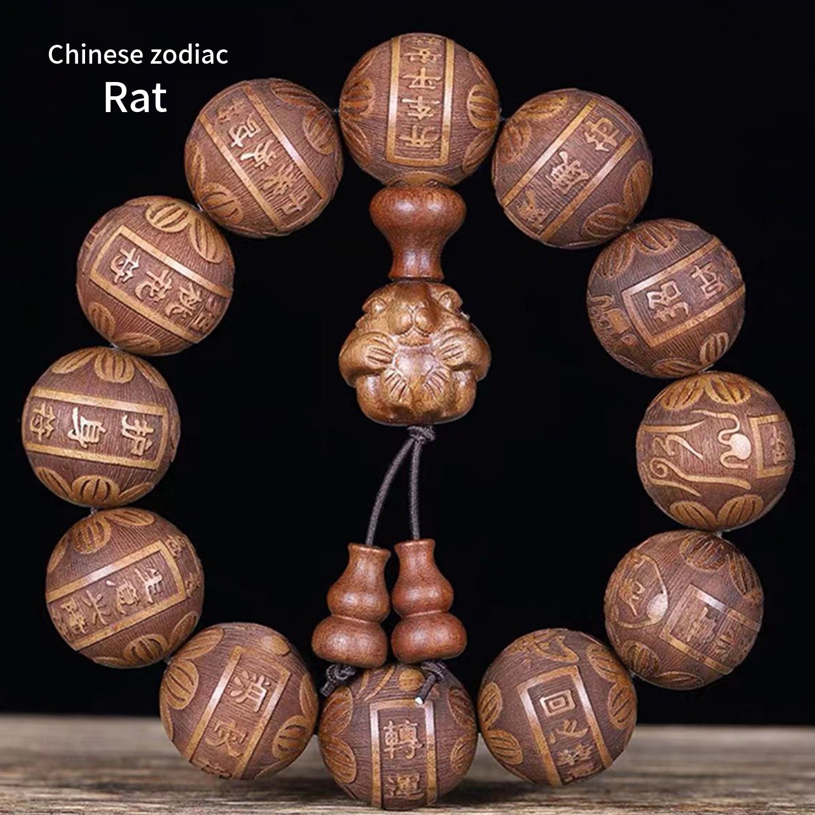 The twelve huanghuali wood zodiac bracelets are made of the finest huanghuali wood. Twelve huanghuali wood beads are carefully connected in series. Each bead is engraved with a charm for protection and safety. These charms originate from ancient Eastern traditional culture and represent various auspicious blessings and mysterious powers. By wearing the bracelets, you can obtain blessings of peace, health, and good luck. The bracelet is additionally equipped with a bead engraved with a zodiac animal, a total of twelve animals, representing different attributes and characteristics of the twelve zodiac animals. Whether it is the quick wit of the rat or the majesty and dignity of the dragon, each zodiac animal has its unique symbolic meaning and meaning. Customers can purchase corresponding zodiac bracelets based on their zodiac attributes to enhance the emotional connection between the user and the bracelet.