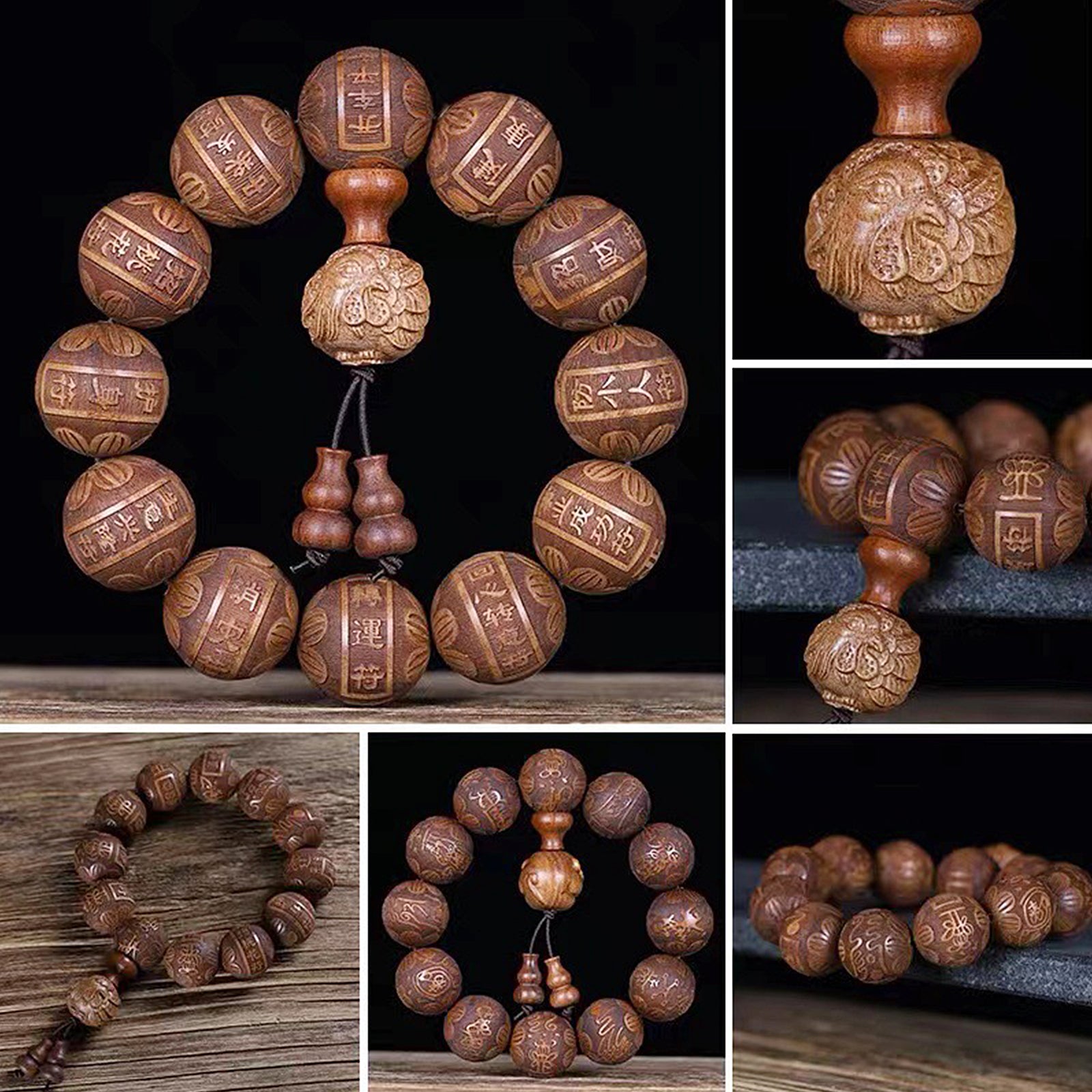 Each bead on the huanghuali wood zodiac bracelet is engraved with a charm for protection and safety. There are twelve charms in total, which bring mysterious protection and blessing to the wearer, and protect his safety and health. Customers can choose the corresponding bracelet according to their zodiac attributes to enhance the emotional connection between the user and the bracelet. Wearing bracelets can inspire people's inner wishes for blessing, attract a peaceful aura, and bring good luck and success to the wearer. During meditation and concentration, bracelets can help regulate breathing and focus, helping meditators enter a peaceful state of mind and achieve physical and mental balance and inner harmony. Huanghuali wood itself has mysterious energy. Wearing a bracelet can not only attract positive energy and eliminate negative energy but also enhance the wearer's aura and luck, bringing positive influence and change. The huanghuali wood zodiac bracelet is a kind of amulet with mysterious power and auspicious meaning, bringing all-around physical and mental pleasure and inner balance to the wearer.