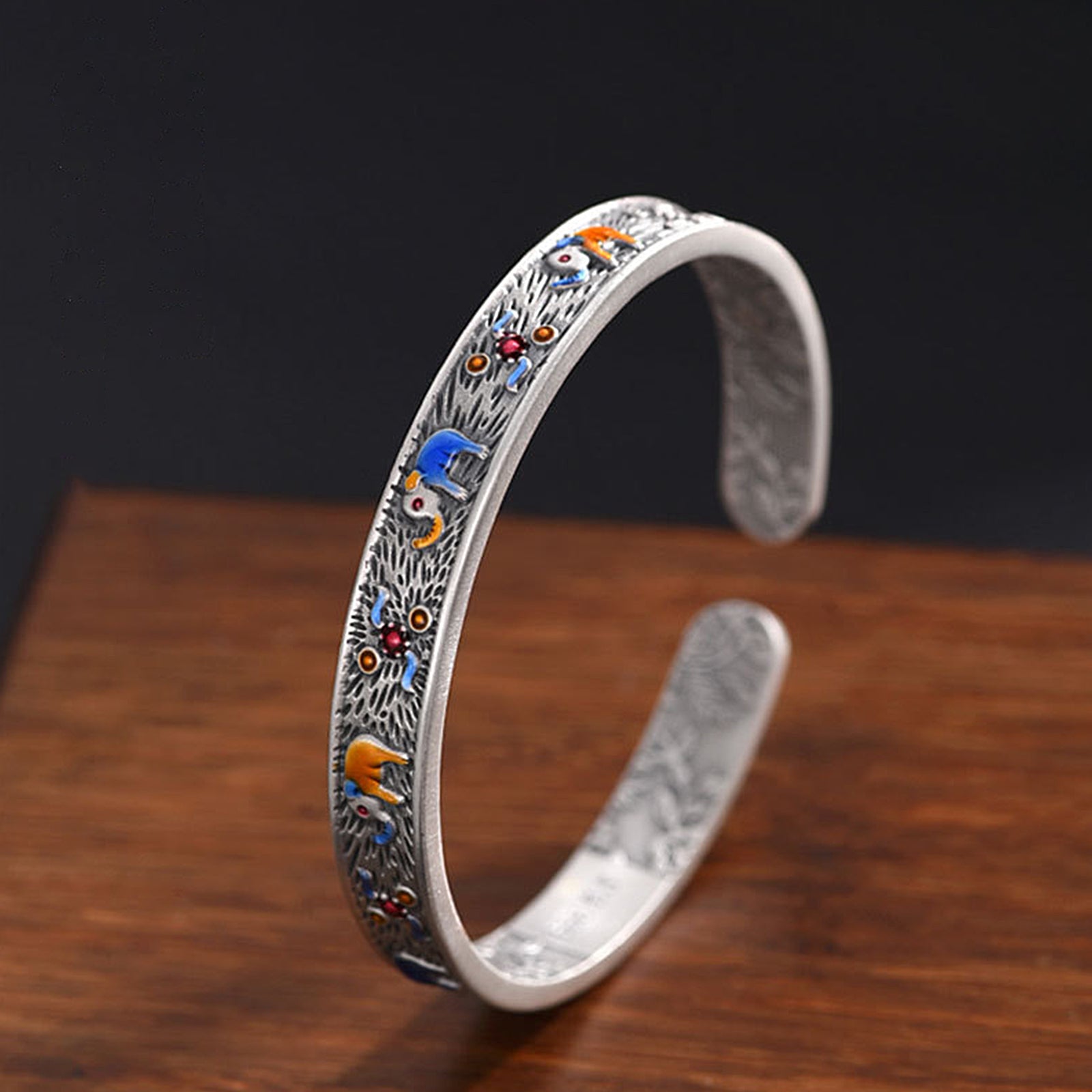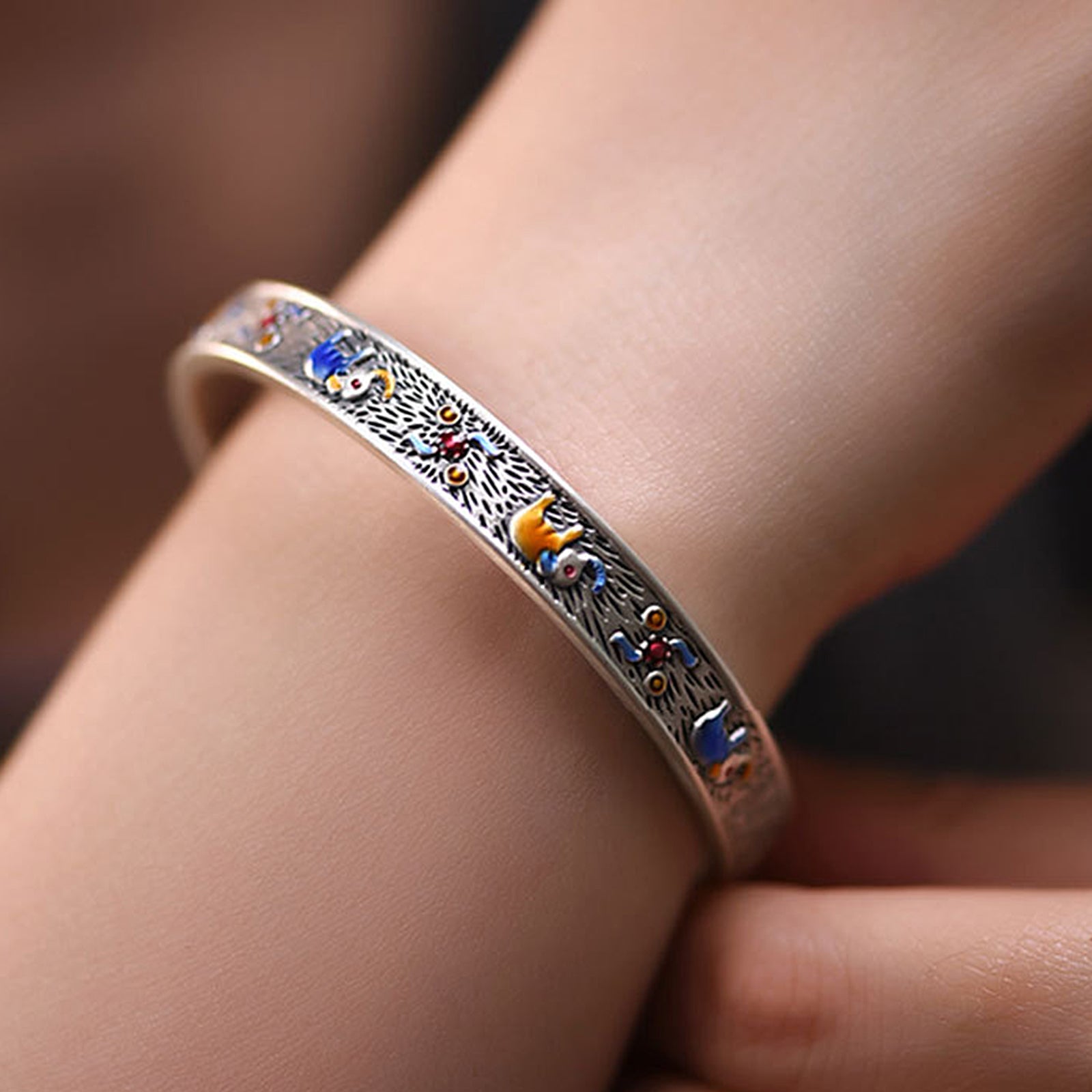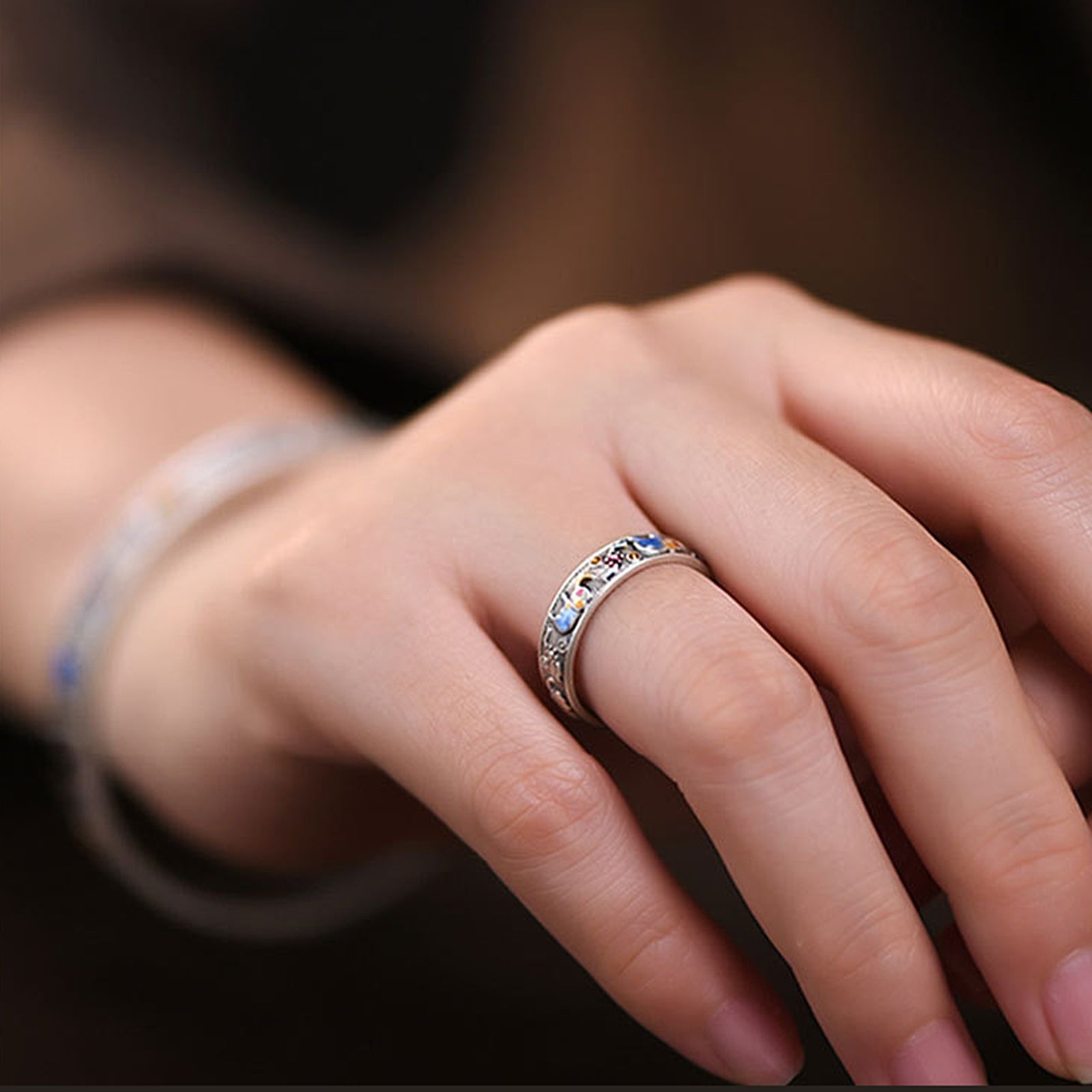 Wear the enamel auspicious ring on the middle finger or ring finger of your left hand, and wear the enamel auspicious bracelet on the left wrist to promote the flow of energy between yourself and the bracelet and ring, which can balance your energy and harmonize your aura. Holding the ring or touching the bracelet while meditating or praying can enhance the protection of the mind and purify the mind to attract good luck and wealth. Continuously worn in daily life, it can promote health and strengthen immunity. Wearing it in social situations can enhance the charm of interpersonal relationships and love, making interpersonal interactions more harmonious and beautiful.