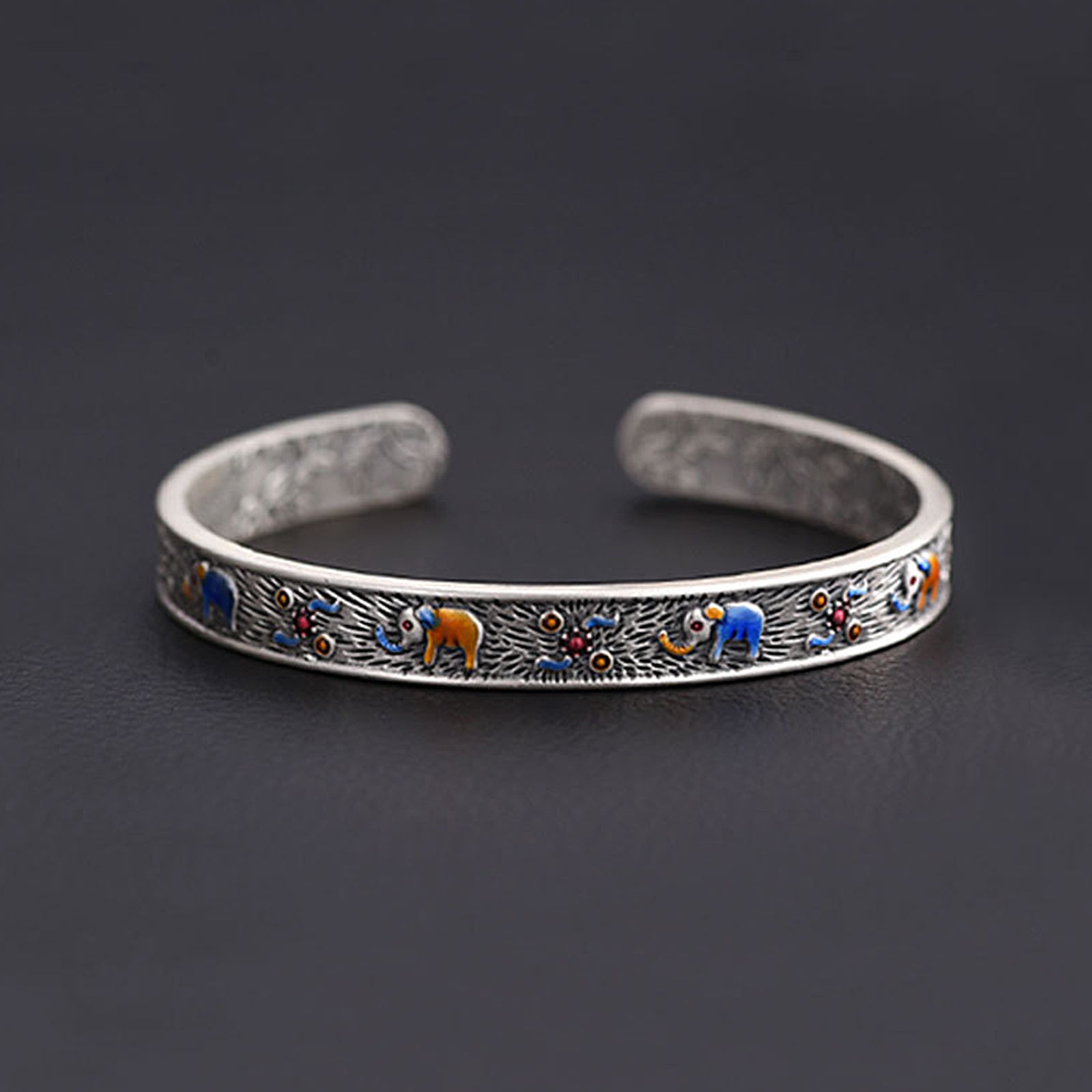 This metal enamel auspicious ring + bracelet set is a pair of exquisite jewelry with oriental charm, integrating happiness and auspiciousness into every detail. The designs of the rings and bracelets are inspired by auspicious elements in traditional Chinese culture. The clever use of Ruyi patterns and elephant patterns gives this pair of jewelry a charming oriental charm.