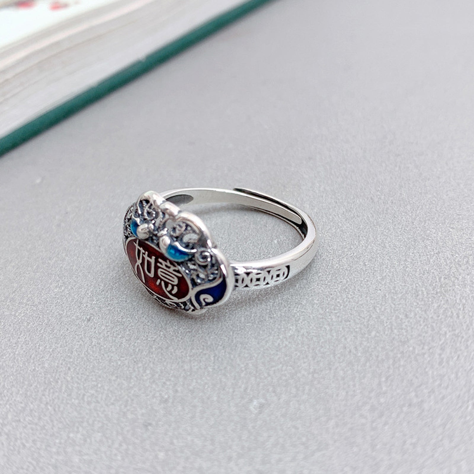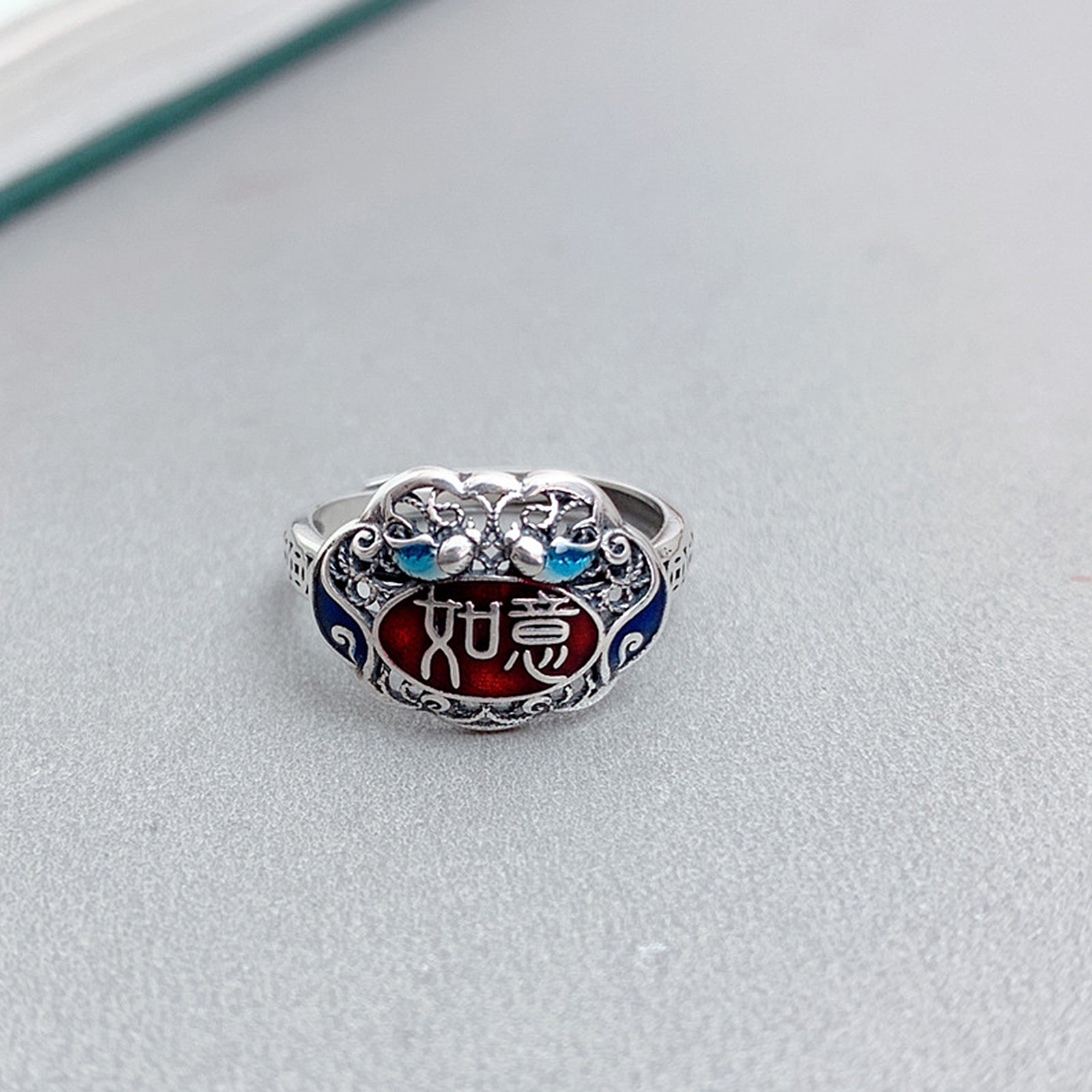 The wishful shape of the ring can bring good luck and auspiciousness to the wearer, making wishes come true. The inlay of enamel adds artistic beauty and visual effect to the ring. As a precious gift, the metal enamel Ruyi ring not only represents the blessing and care of the gift giver but can also become a precious collection for the recipient, carrying beautiful emotions and memories. Whether it is for yourself or a loved one, it is a precious and meaningful gift.