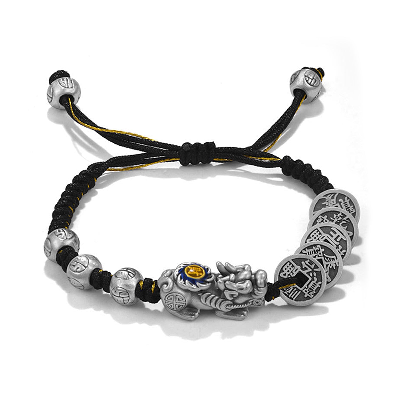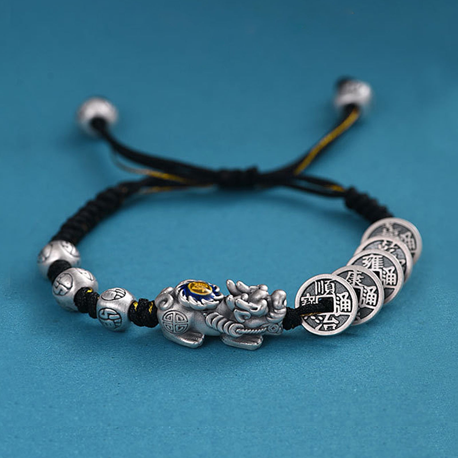 The Pixiu Five Emperors' Money Bracelet is a powerful amulet that combines the dual energy of Pixiu and Five Emperors' Money, which can bring you all-round effects of attracting wealth, warding off evil spirits, enhancing fortune, stabilizing emotions, and improving health.