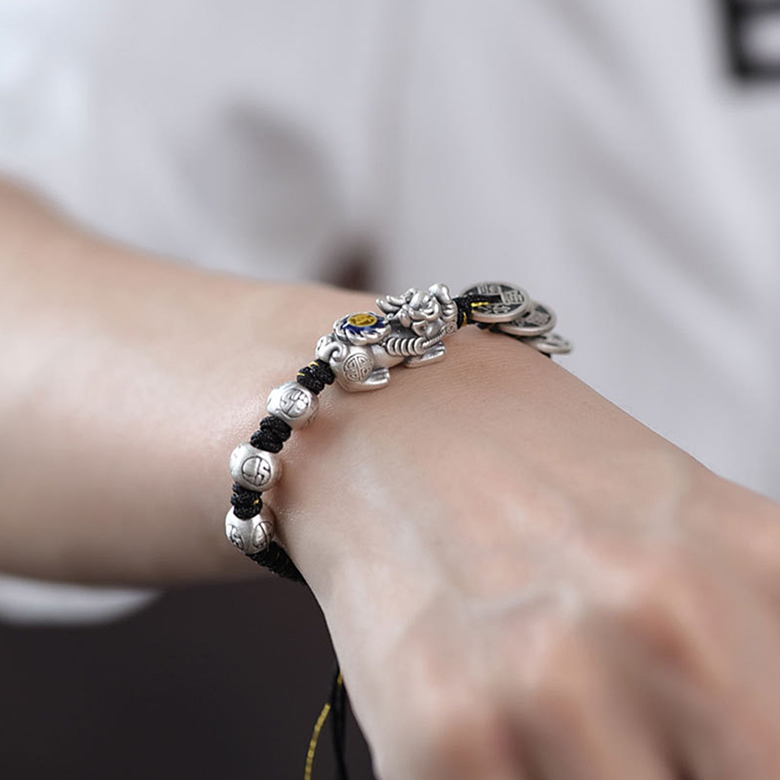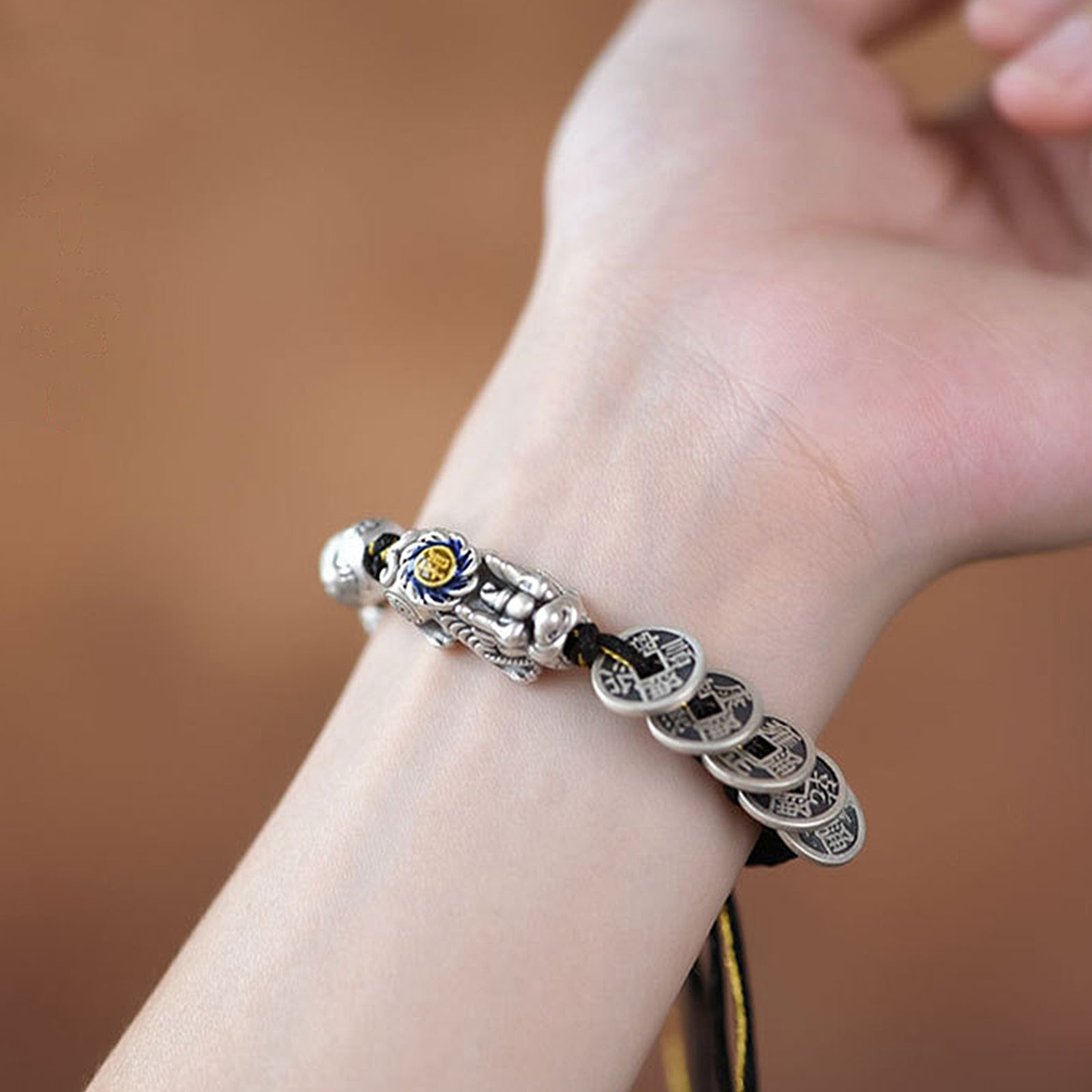 The Five Emperors Money Pixiu Lucky Bracelet is a pixiu bracelet and a lucky charm bracelet that combines traditional Chinese cultural elements with modern fashion design. It combines Five Emperors' Money and Pixiu, two traditional symbols that symbolize wealth and auspiciousness, as well as the fashionable combination of the bracelet, bringing you double blessings and beauty. Five Emperors' Money, as an ancient Chinese currency, is regarded as a symbol of bracelet for wealth, Health and treasure. The Five Emperors' Money represents the power of the Five Emperors of the Five Directions, which can protect the wearer from loss of wealth and ensure a healthy family life. Pixiu bracelet is one of the traditional Chinese mythical beasts. It symbolizes the effect of warding off evil spirits, attracting good fortune, and controlling the house. It is also believed to be able to absorb wealth, gather wealth receive blessings, and help you have a smooth career and abundant wealth. Our bracelet for good luck and prosperity is not only a piece of jewelry but also a transmission of energy. It comes with our wishes for a wonderful life and will bring you happiness in the days to come.