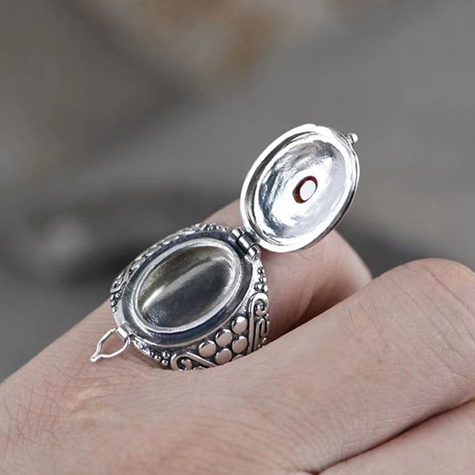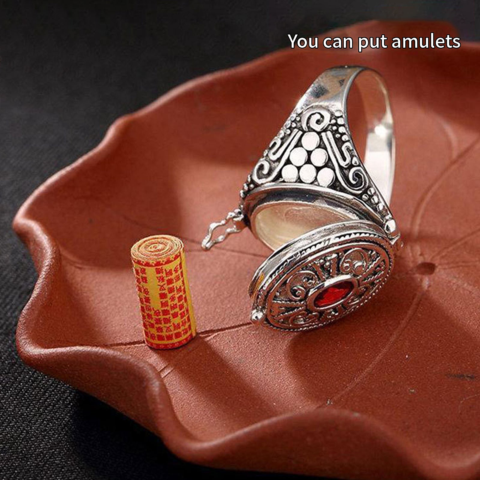The fengshui pixiu mantra ring can be opened and there is storage space for small photos notes or other items.