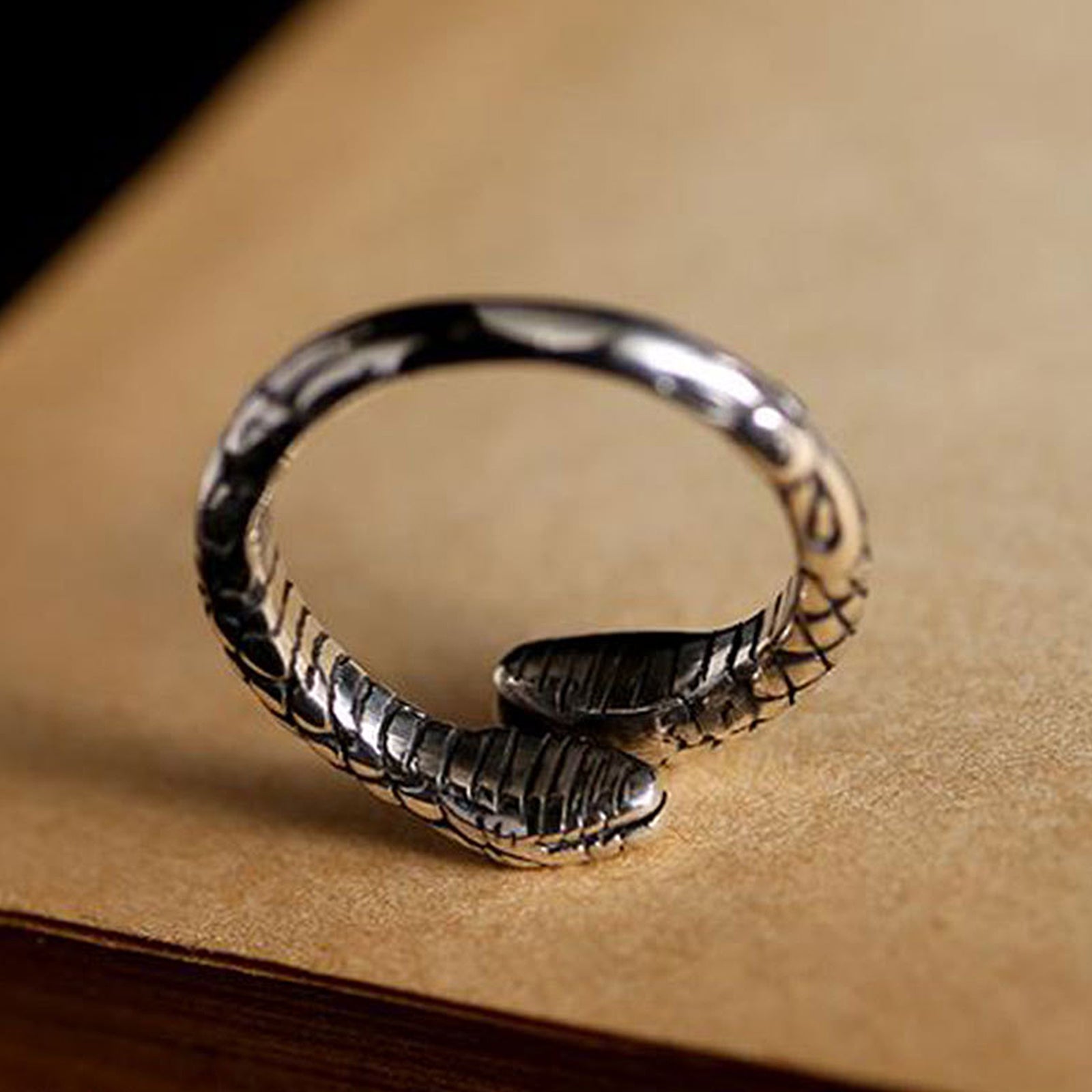 The metal snake ring perfectly combines the spirituality of the snake with the texture of metal. The ring has a unique design, inspired by the shape of a snake, with soft and dynamic curves, exuding a mysterious and unique atmosphere. Made of selected high-quality metal, the texture is sturdy and durable, ensuring it will not fade or deform after long-term wear. Every detail of the ring has been carefully carved, showing the craftsman's superb skills and pursuit of beauty.