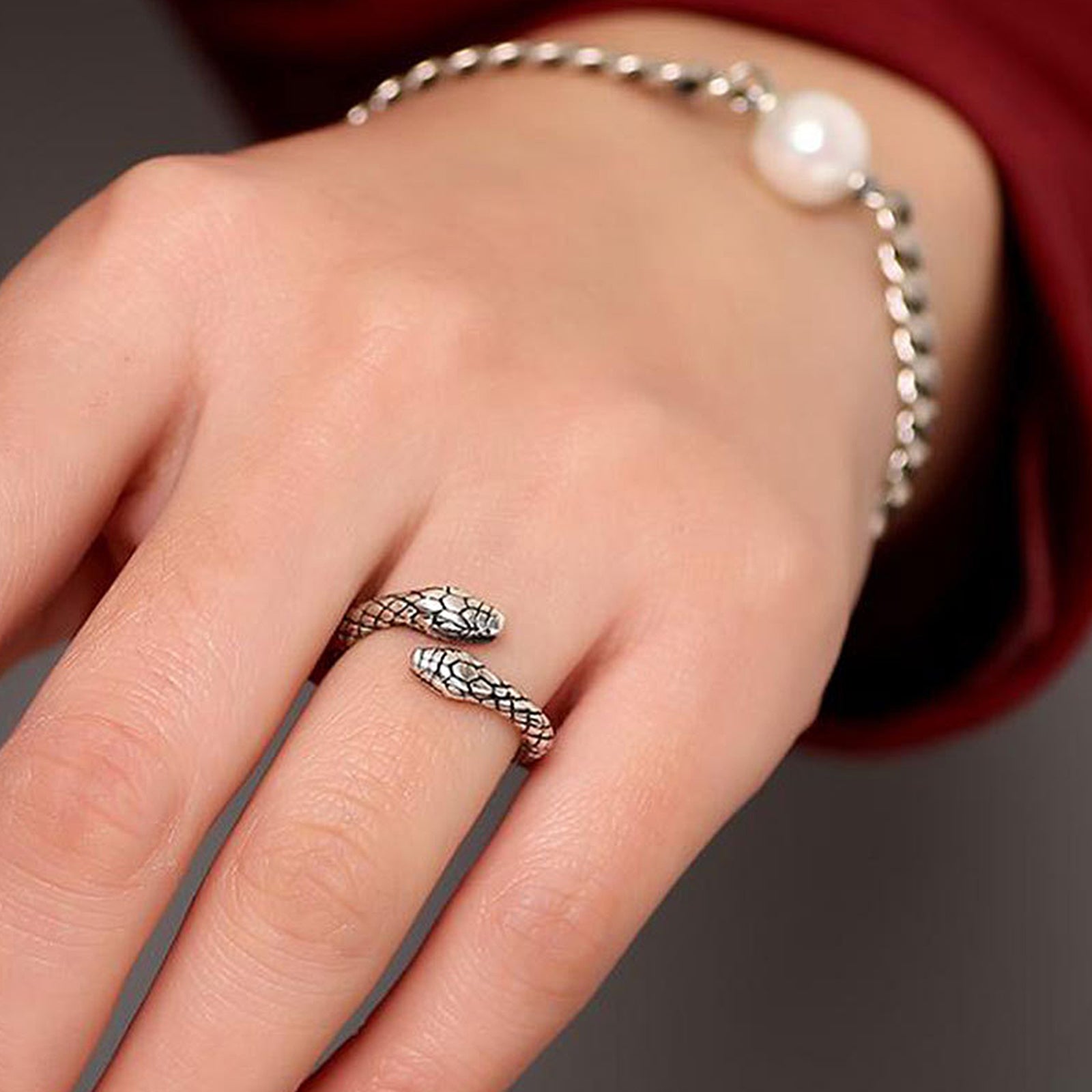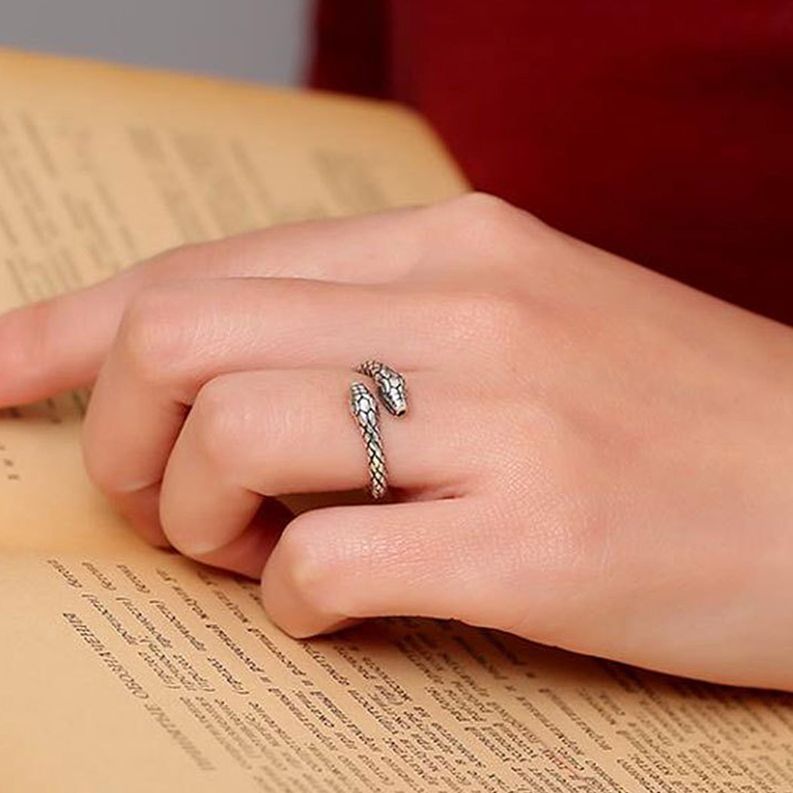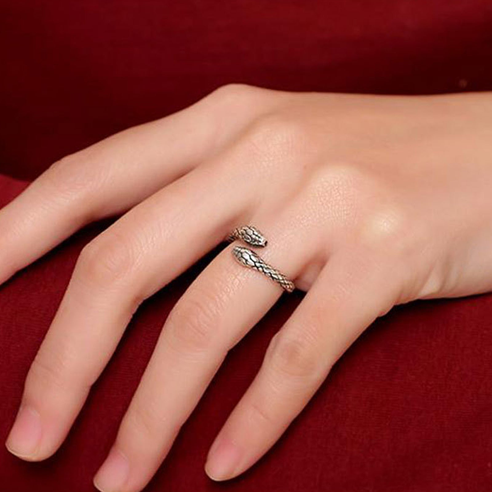 Wear the snake ring on the middle finger of your left hand. The left hand is the side that absorbs energy. The middle finger of your left hand is closely connected to your spiritual awareness. Wearing a snake-shaped ring symbolizes courage, perseverance, and luck, representing positive expectations for the future and bravely accepting challenges. Wearing a snake ring can balance physical and mental energy, help people maintain inner peace and stability, absorb the positive energy around them, and bring good luck and happiness. Snake rings can show the wearer's confidence and charm, attract the attention of others, and enhance their aura.