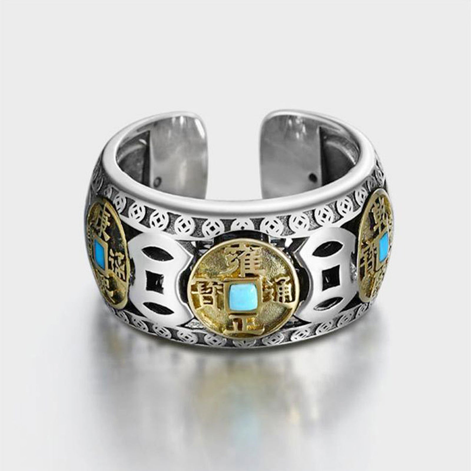 The turquoise Five Emperors Money metal ring is a powerful amulet that can protect and enhance your quality of life in all aspects.
