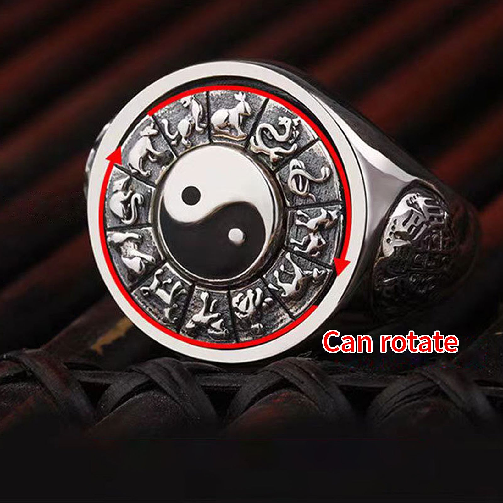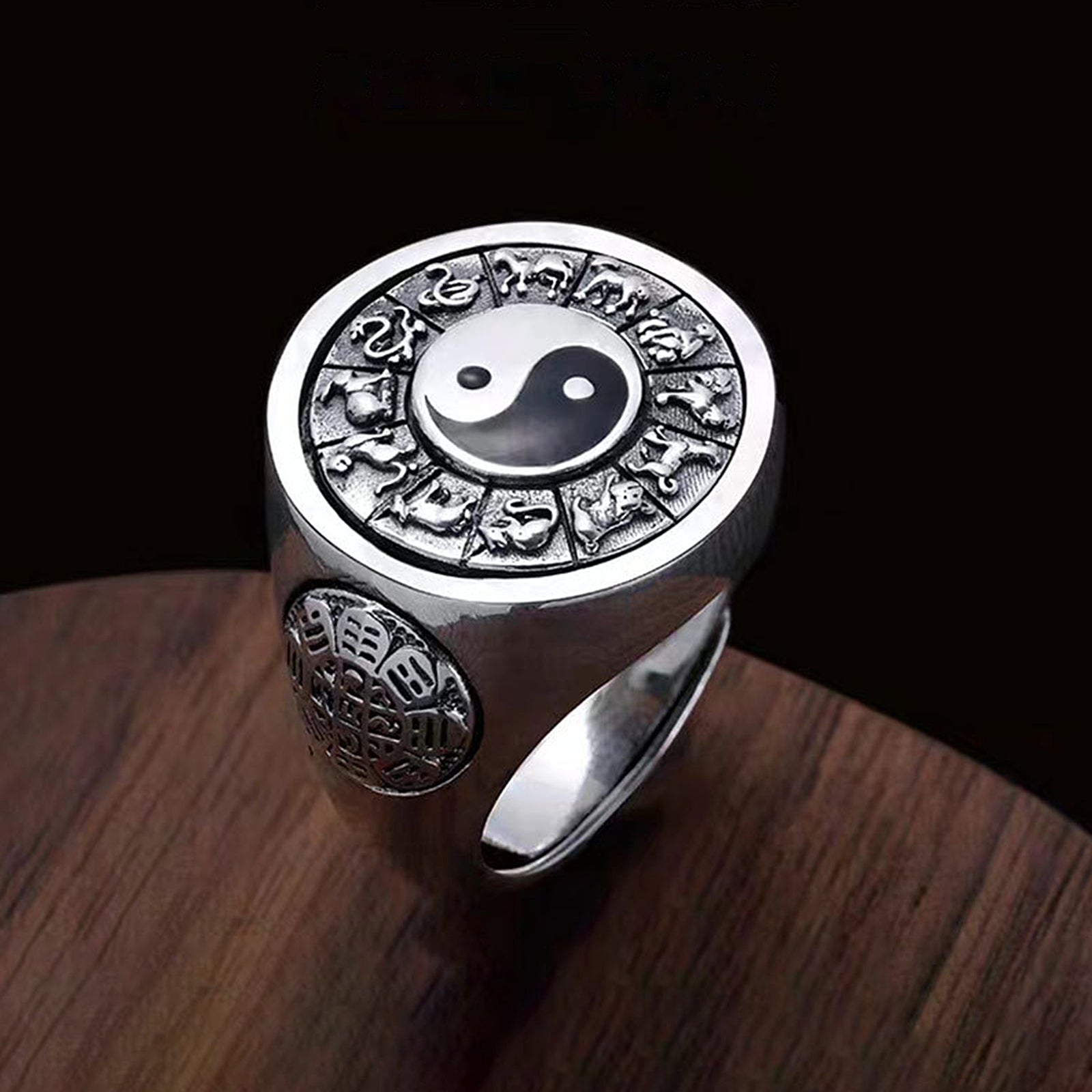This zodiac sign Yin Yang Bagua ring combines the elements of Yin Yang, Bagua, and the twelve zodiac signs in Chinese culture. A delicate Yin-Yang Tai Chi diagram is carefully carved in the center of the ring. The Yin-Yang fish in the Tai Chi diagram are intertwined, symbolizing the dynamic balance and harmonious unity of the universe, and deeply embodying the wisdom of Eastern philosophy.