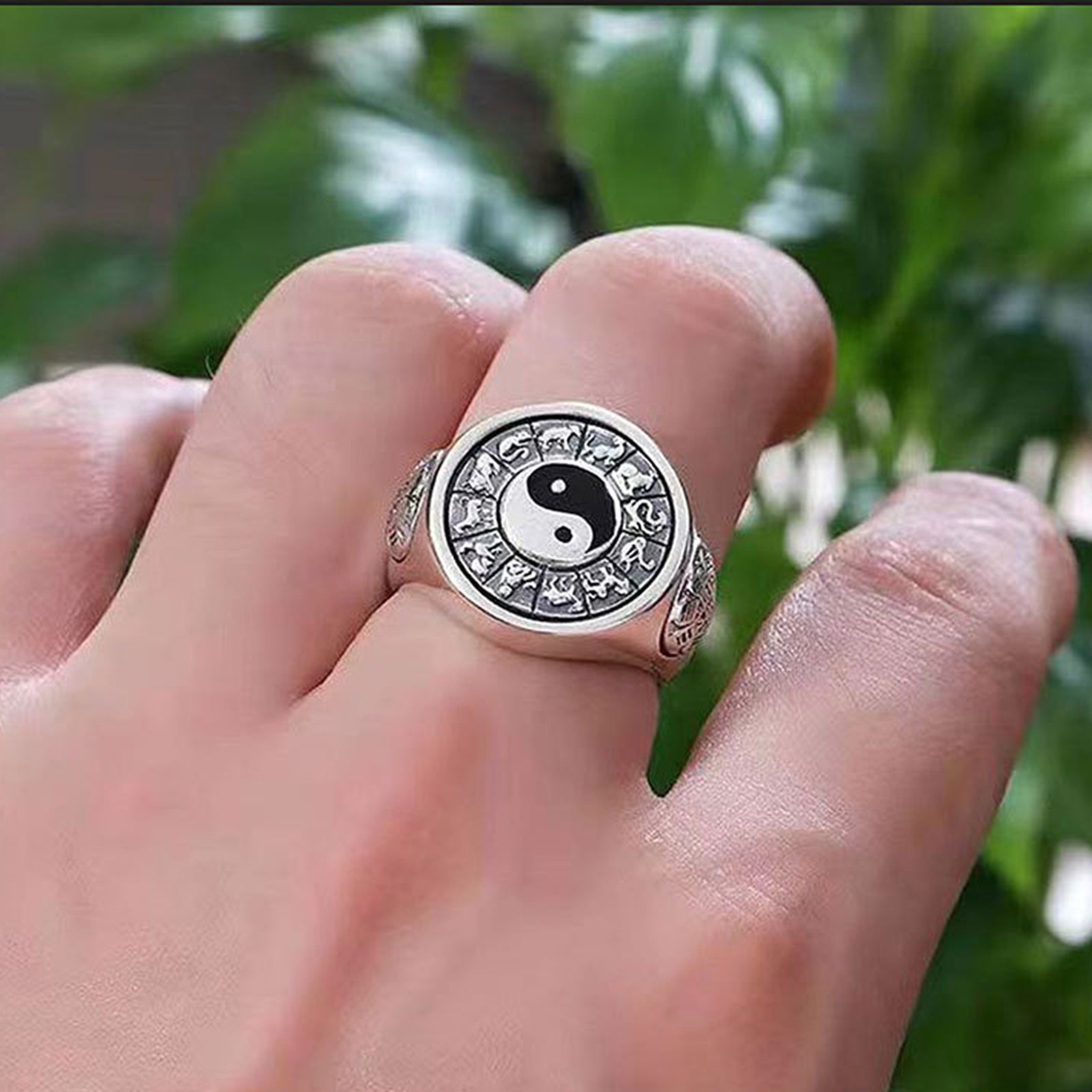 The twelve zodiac signs Yin Yang Bagua ring is an amulet full of metaphysical meaning. Wear the ring on your middle finger or ring finger to help balance yin and yang energy and improve your aura and luck. Rotate around the twelve zodiac signs in the Tai Chi diagram every day, symbolizing the start of a new day and activating positive energy. When meditating or sitting still, place the ring on your palm or finger, feel its energy flow, and enhance your inner peace and wisdom. On the night of the full moon every month, place the ring under the moonlight for purification, absorbing the moon's energy and restoring its protective effect. Cleaning the ring regularly to keep it shiny and clean symbolizes the removal of negative energy and welcomes new good luck. Through these methods, rings can not only enhance your aura and luck but also purify the soul and bring balance and harmony.